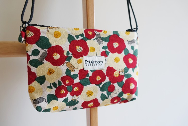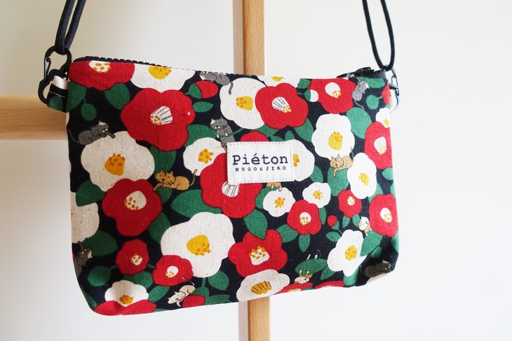 HUJI祤集pieton斜挎包风の花茶花小猫
