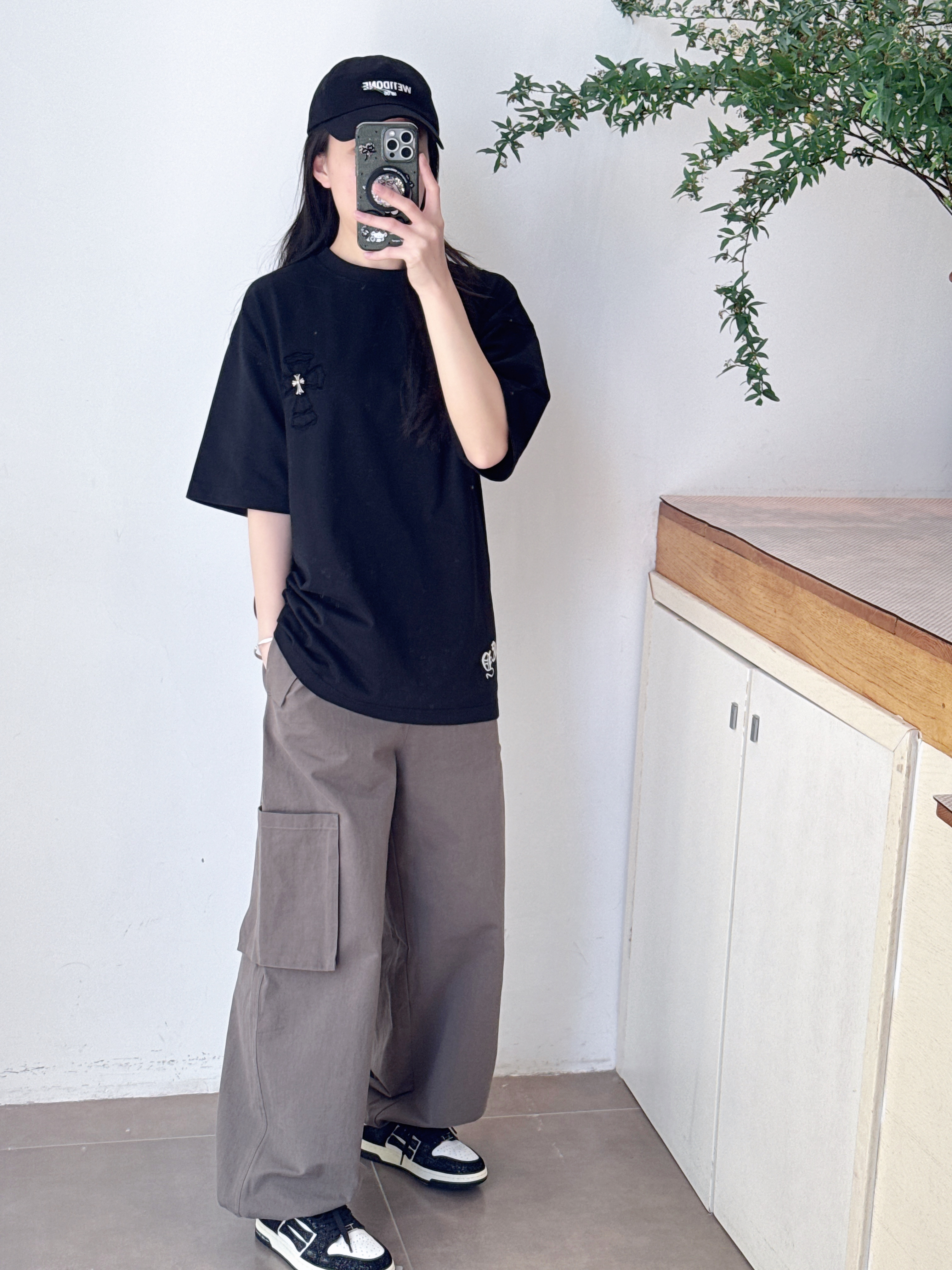SPELLEDIT2025秋季新品切尔西酒店T恤建筑图案印花宽松短袖上衣女