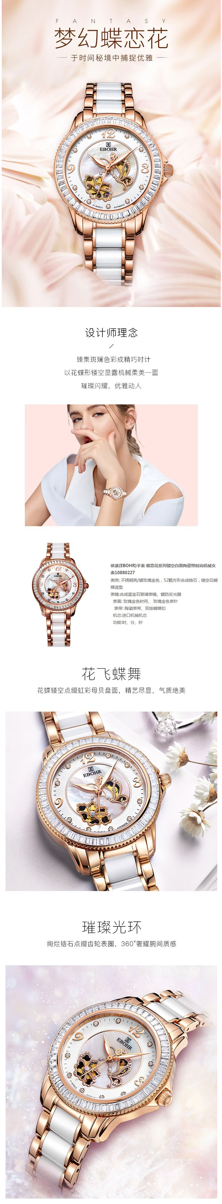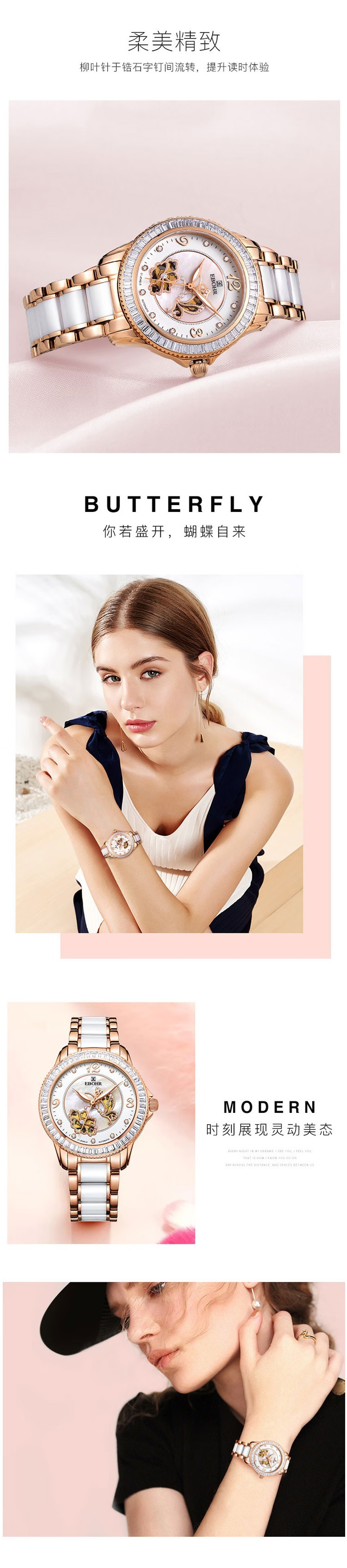 依波19090126女士手表陶瓷机械表女表音符镂空