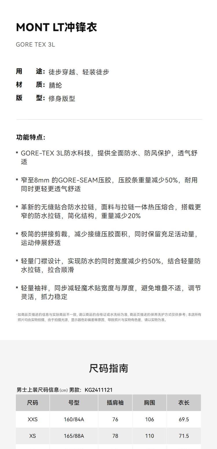 【1999秒杀!】凯乐石KAILAS户外男MONT LTGTX 3L防水硬壳冲锋衣 KG2411121