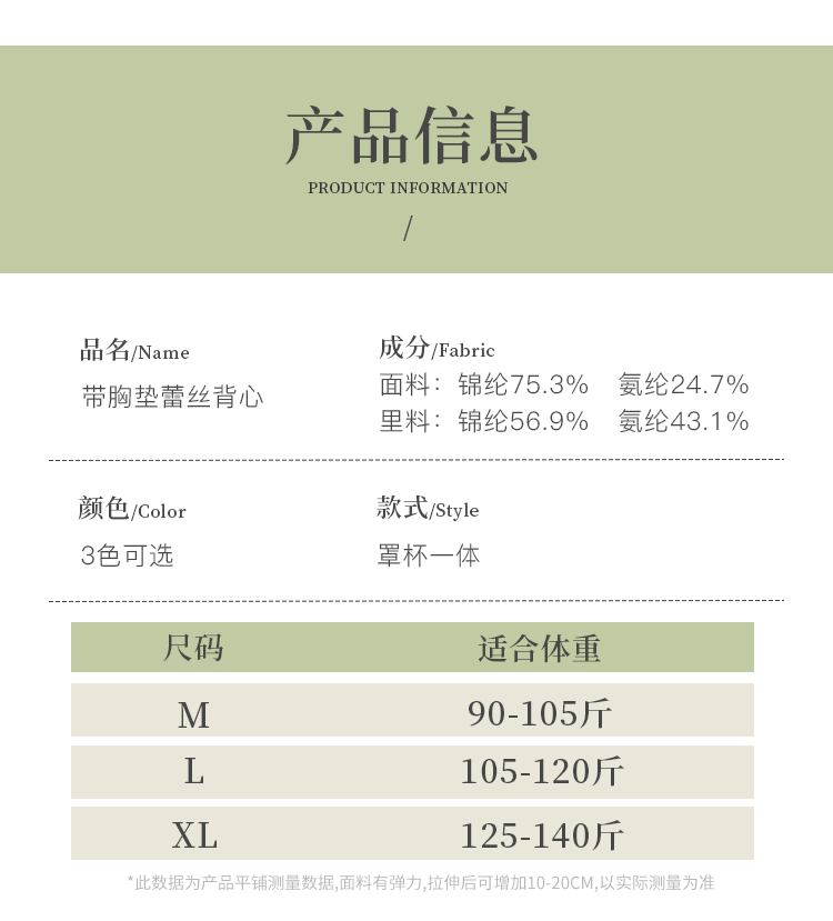 【秒杀价39元】不可用券【秀黛】固定杯蕾丝背心H5883302T【线上专供款】