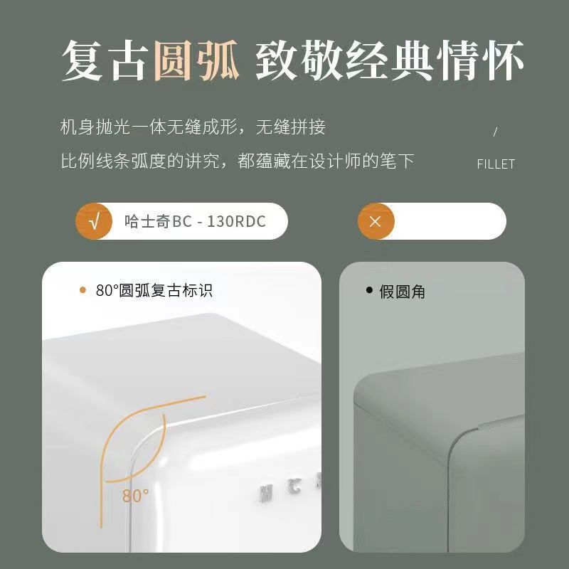HCK哈士奇冰箱BC-130RDC复古小冰箱客厅家用节能网红款