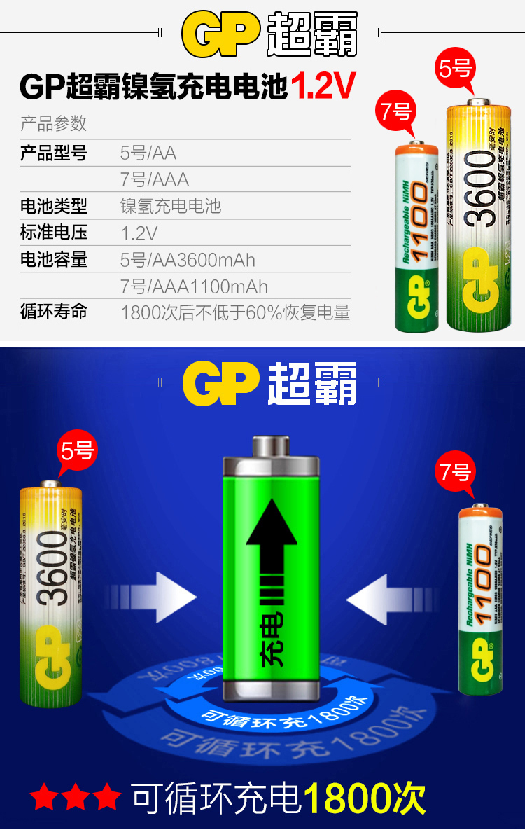 超霸5号充电电池2600MA