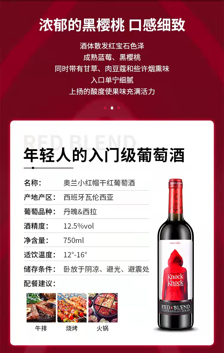 奥兰小红帽干红葡萄酒750ML,3瓶/套