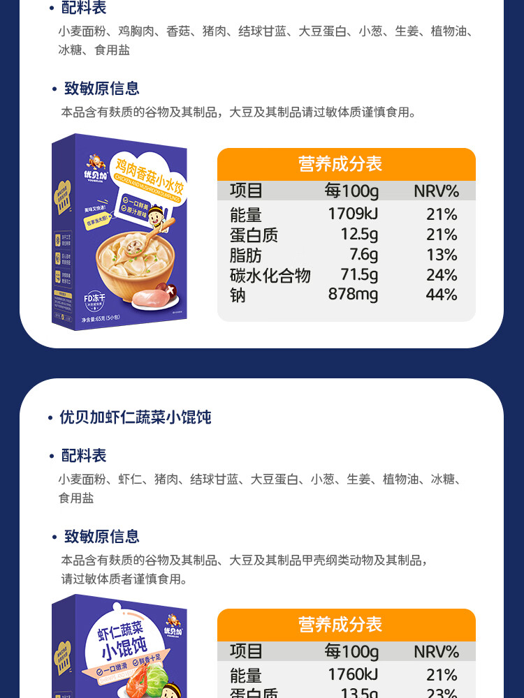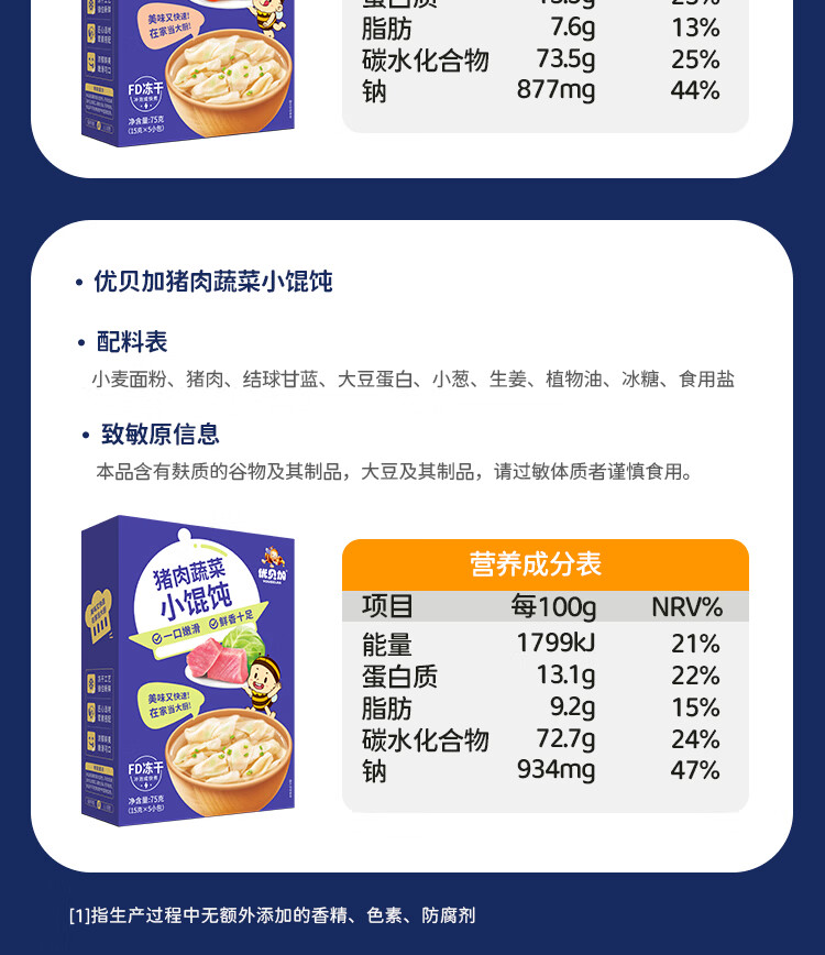 优贝加小蜜蜂猪肉蔬菜小馄饨75g