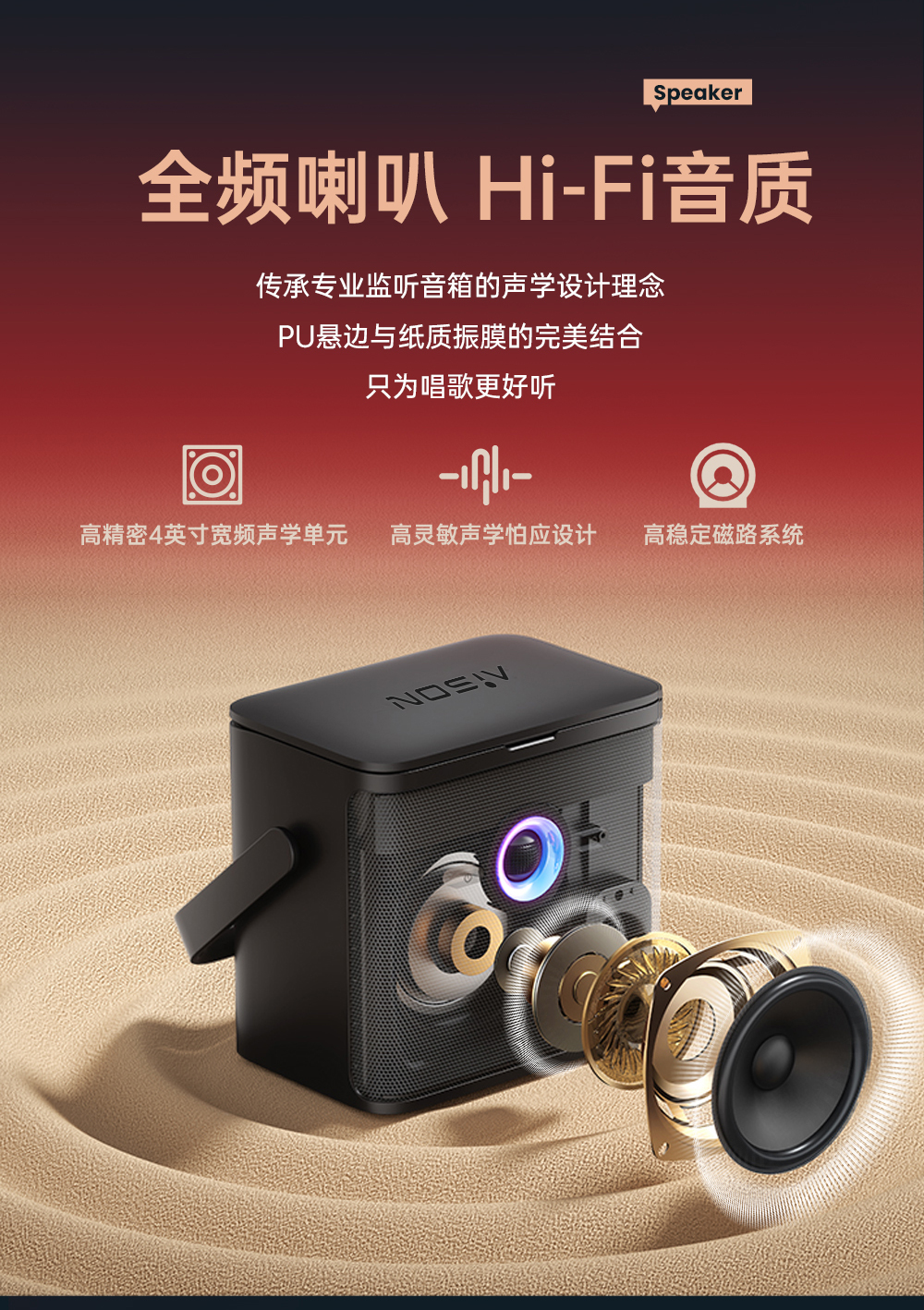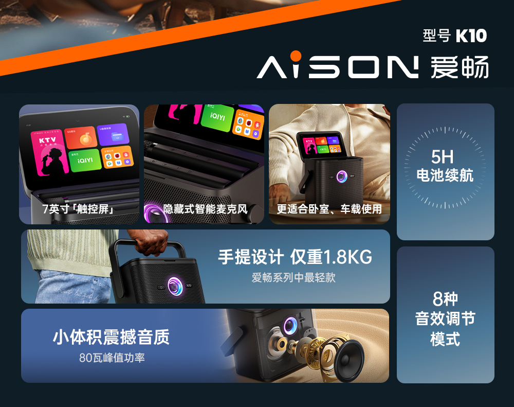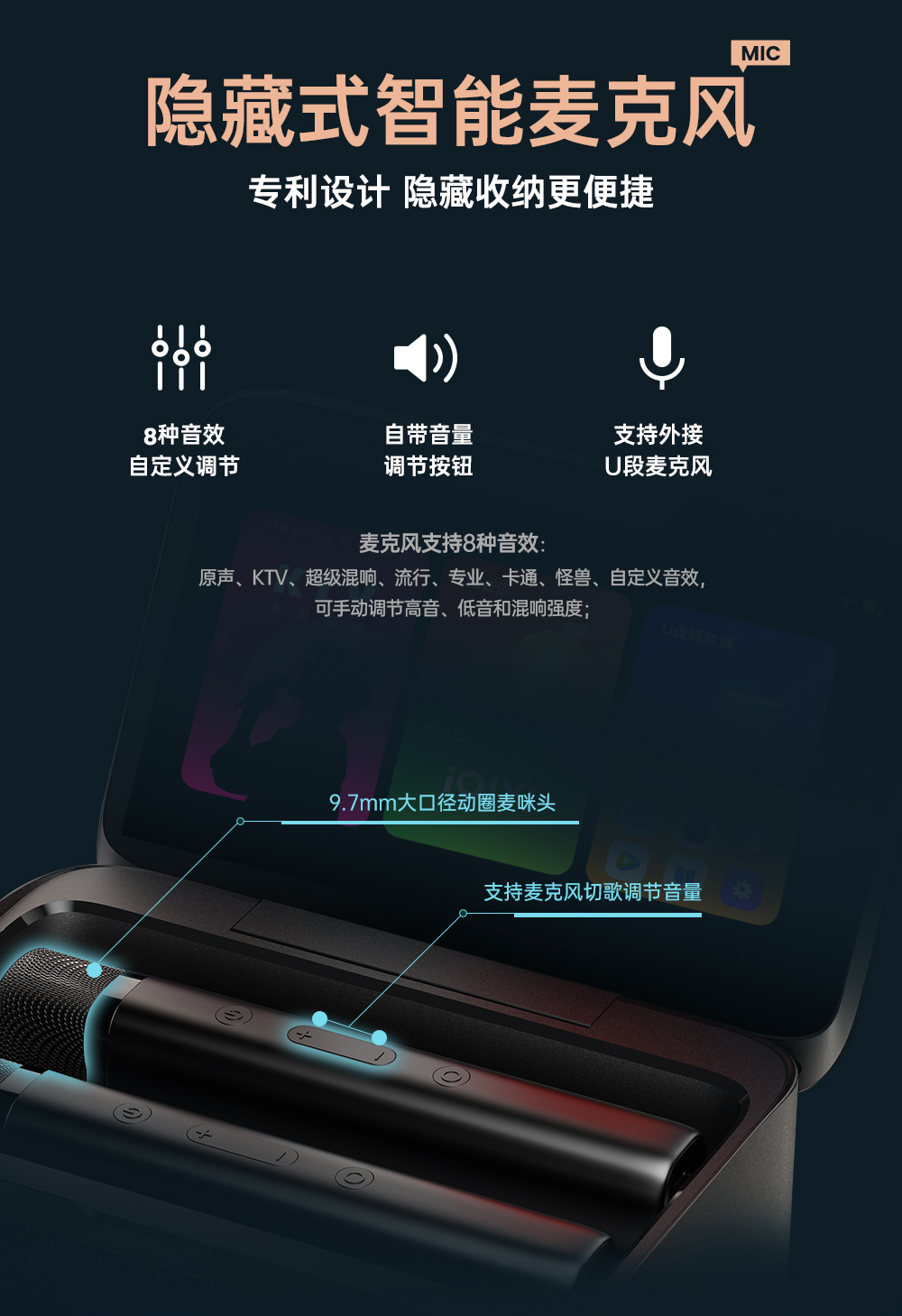 爱畅 K歌音箱 K10 黑色 户外便携式点歌机家庭ktv点歌系统k歌音响套装K10