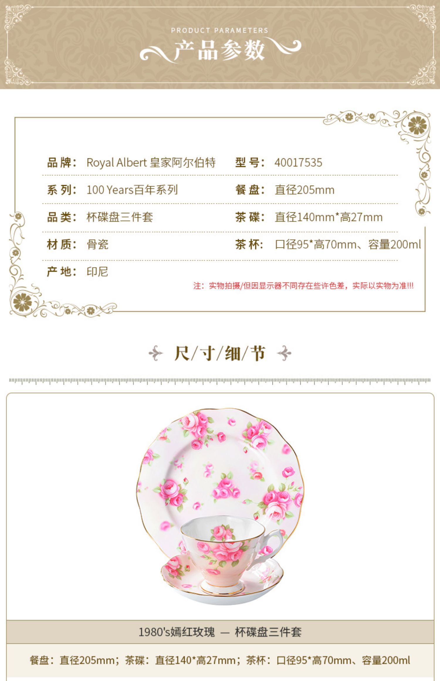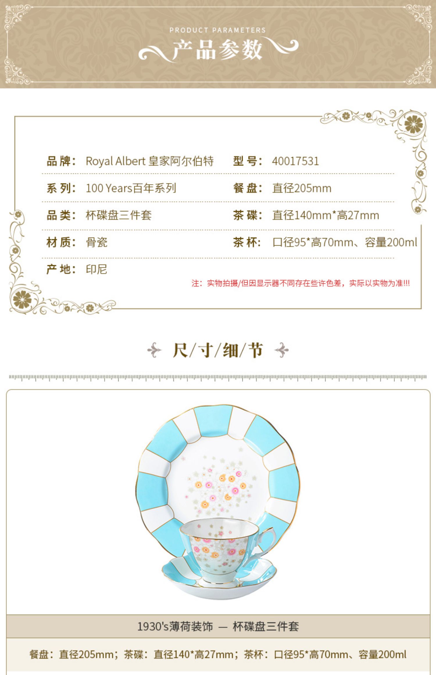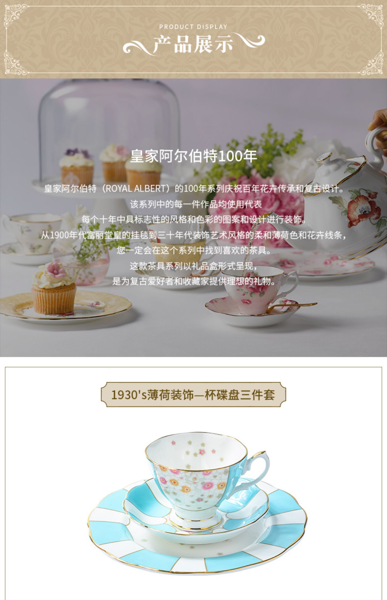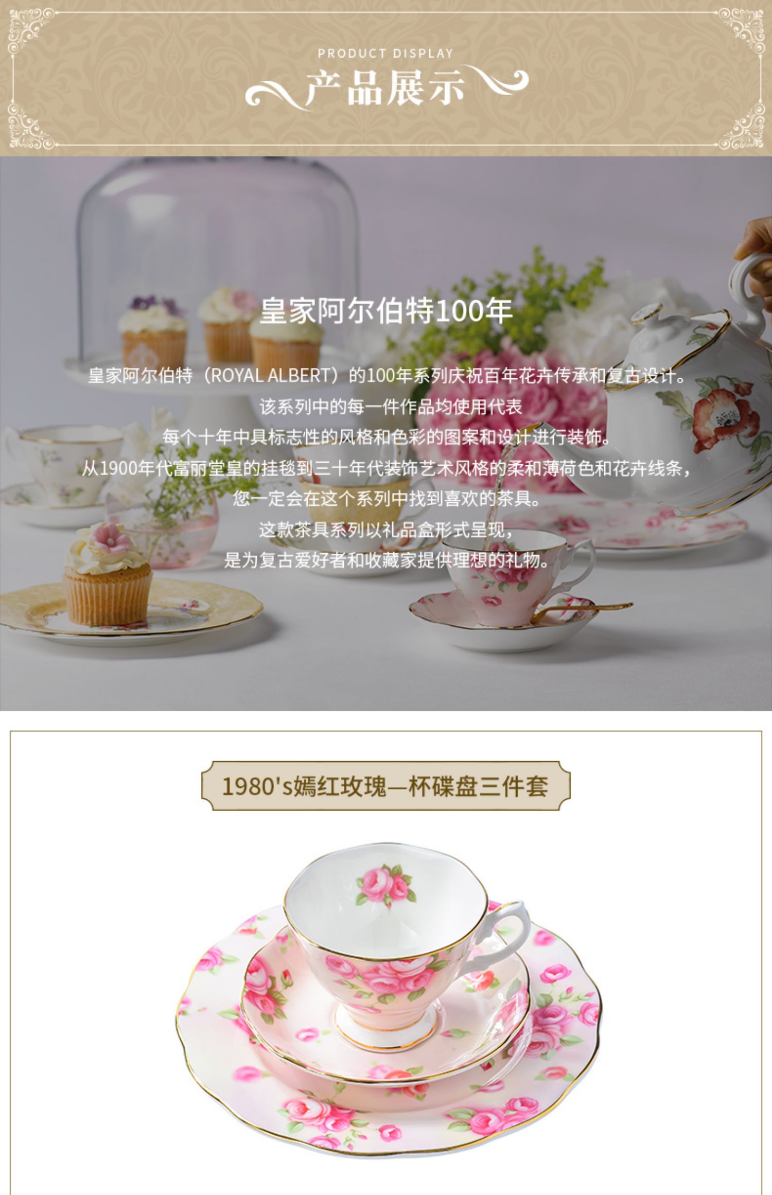Royal Albert 百年系列 碟盘三件套骨瓷咖啡杯碟三件套装英式茶杯