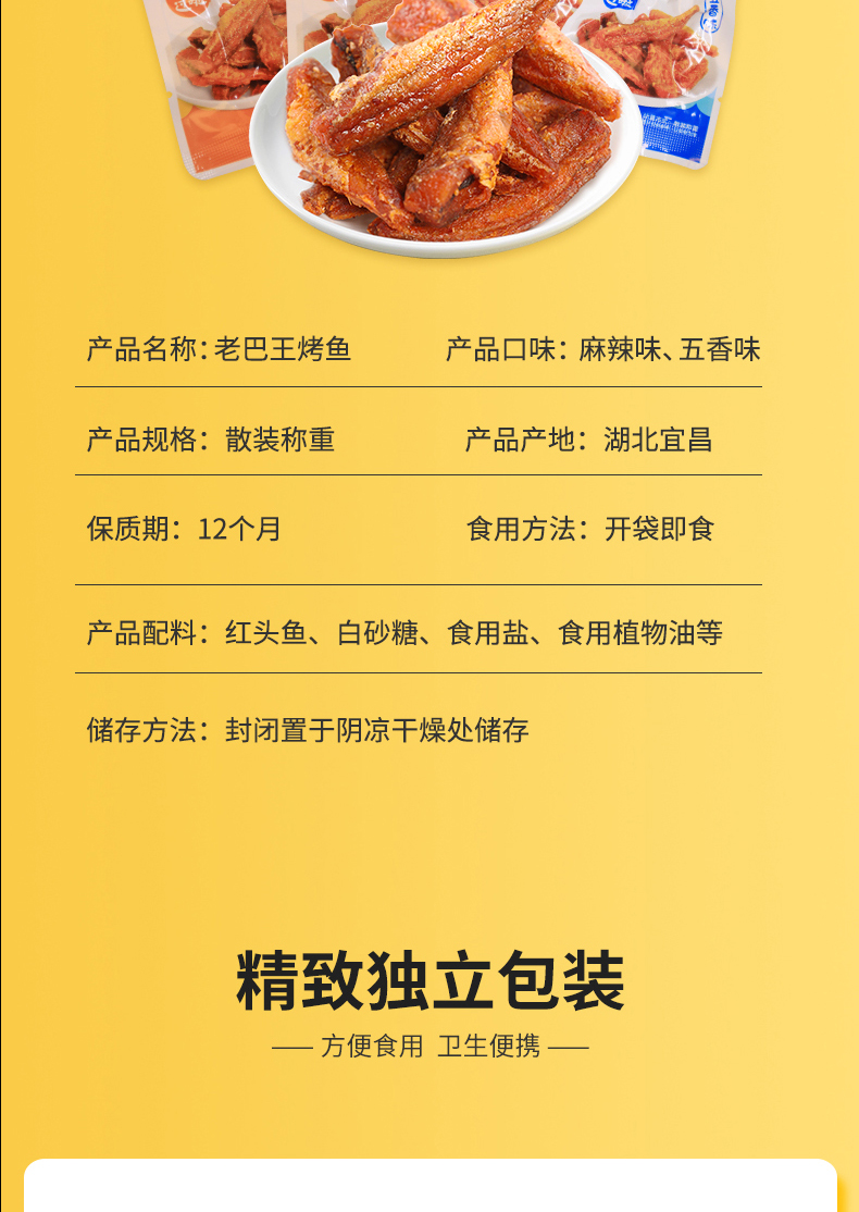 【宜昌】YN老巴王烤鱼500g(五香味、麻辣味混合装)