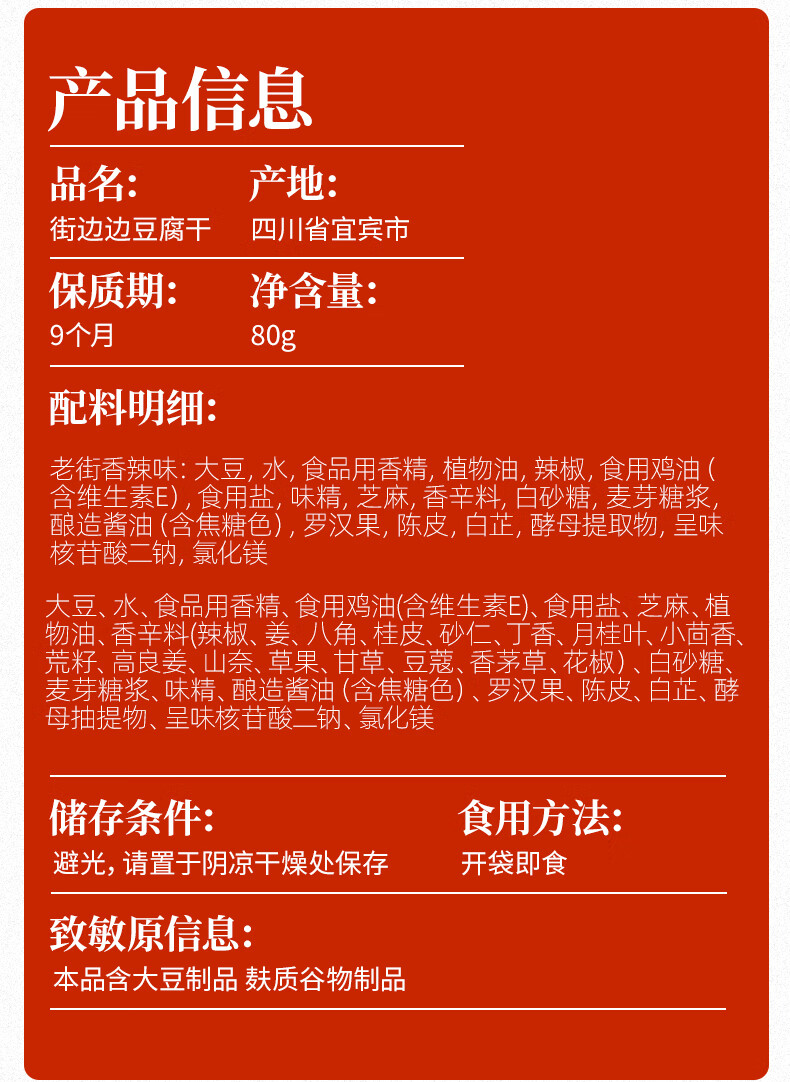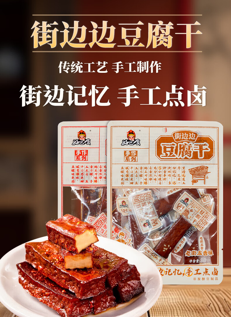 好巴食街边边豆腐干五香味 80g/袋