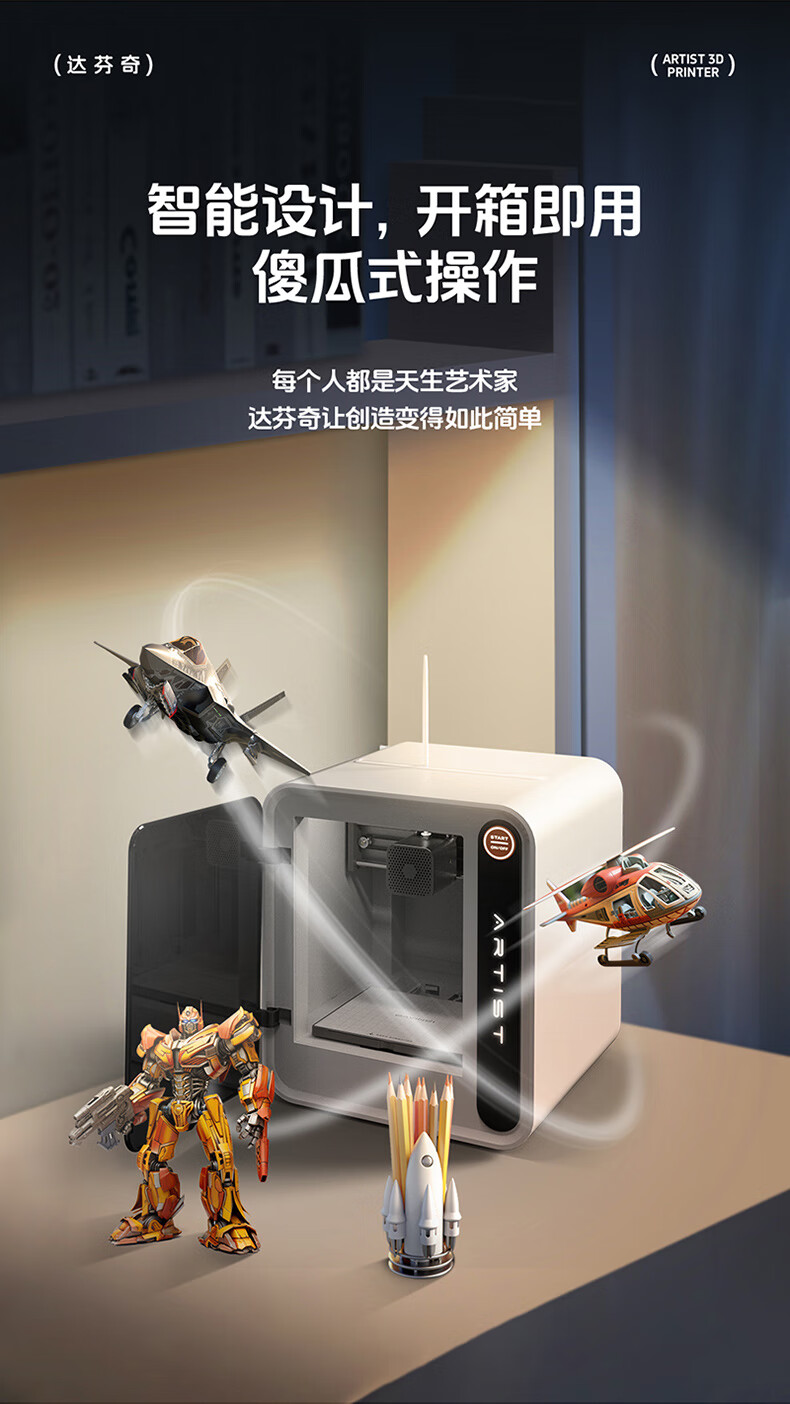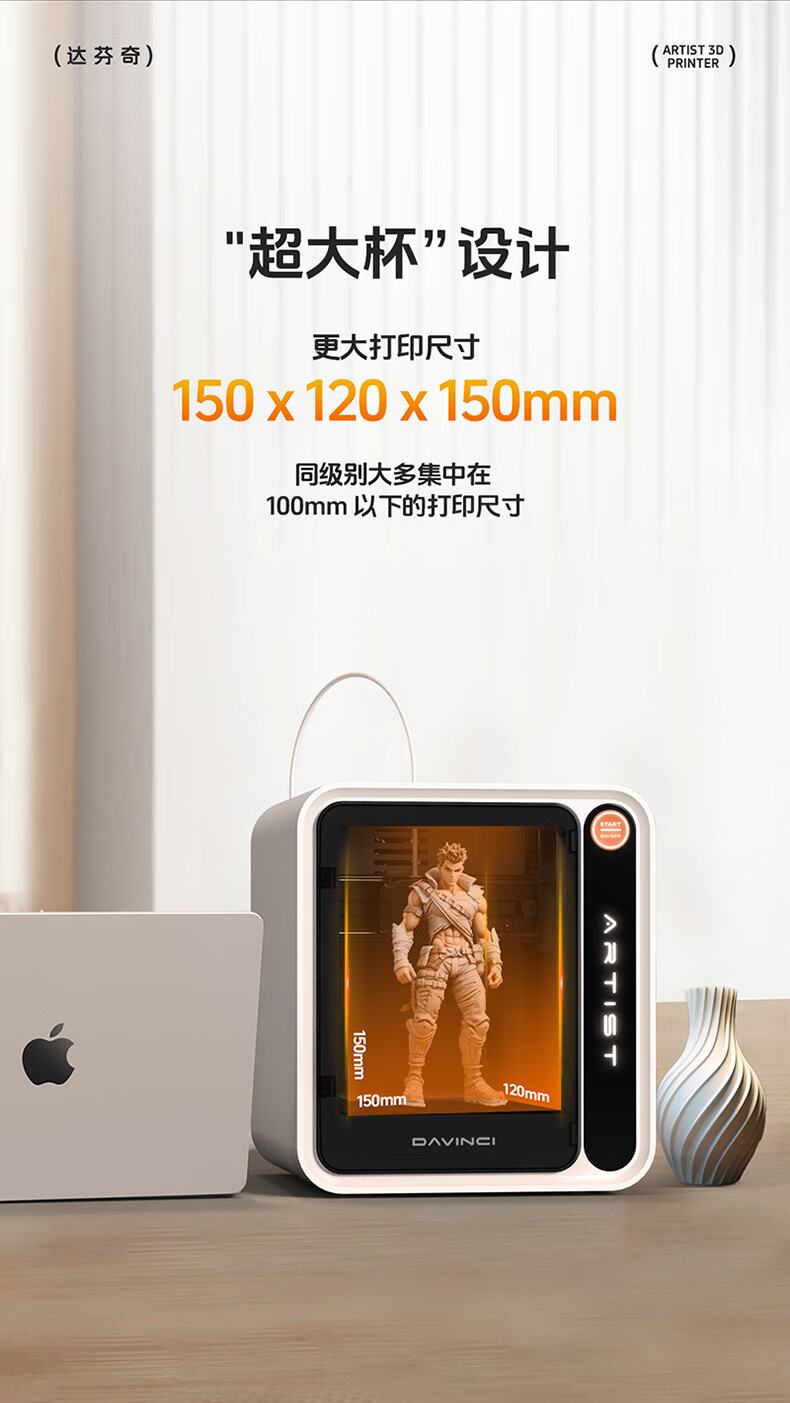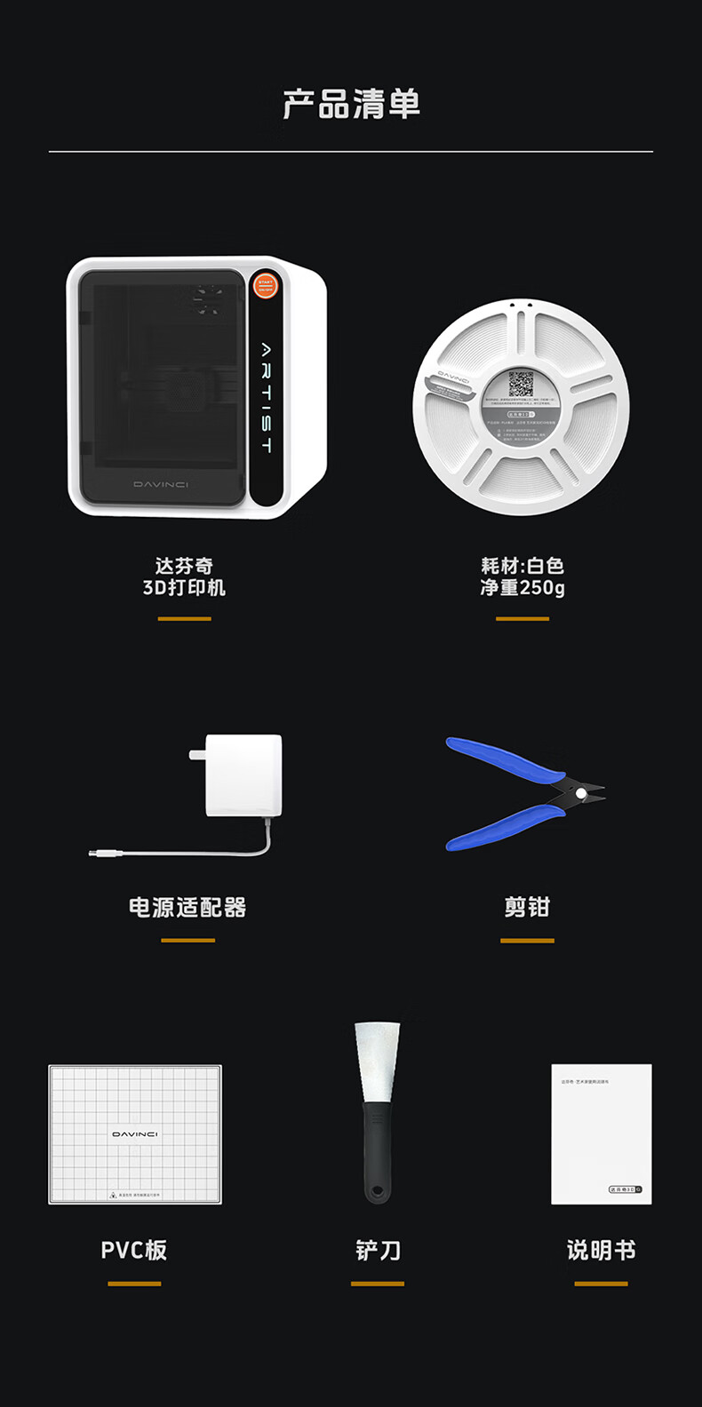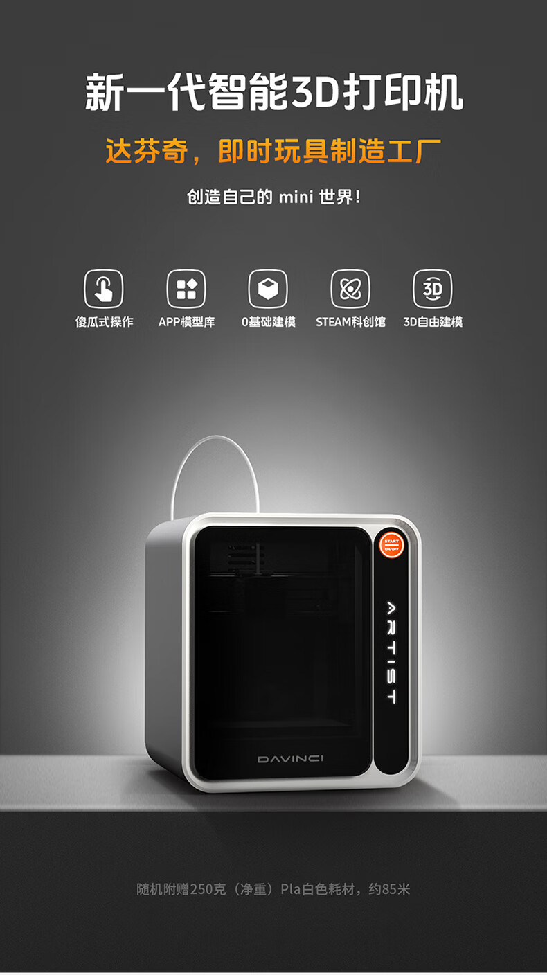 达芬奇 3D打印机 家用Ai拍照建模海量模型一键打印高精度桌面级智能教育DIY立体大人小孩可用 【含耗材250克】
