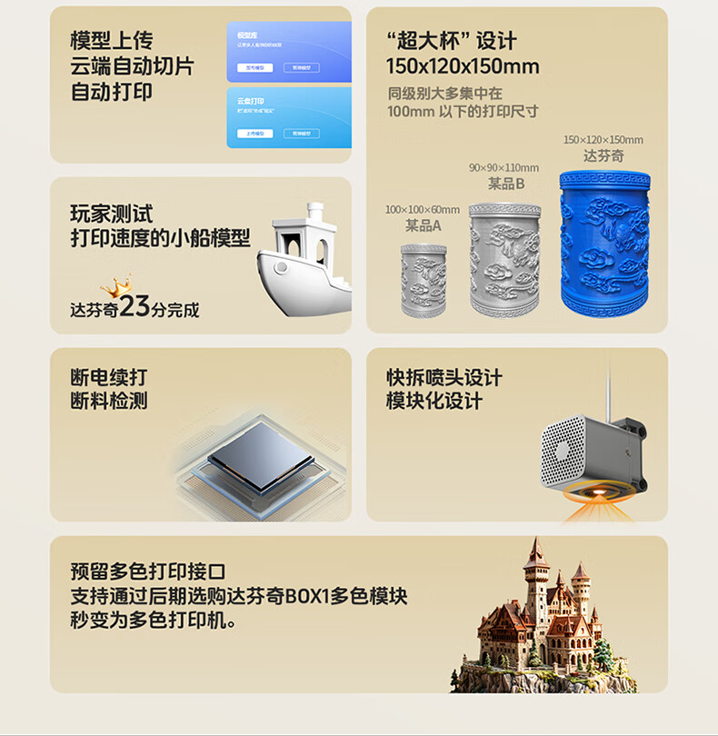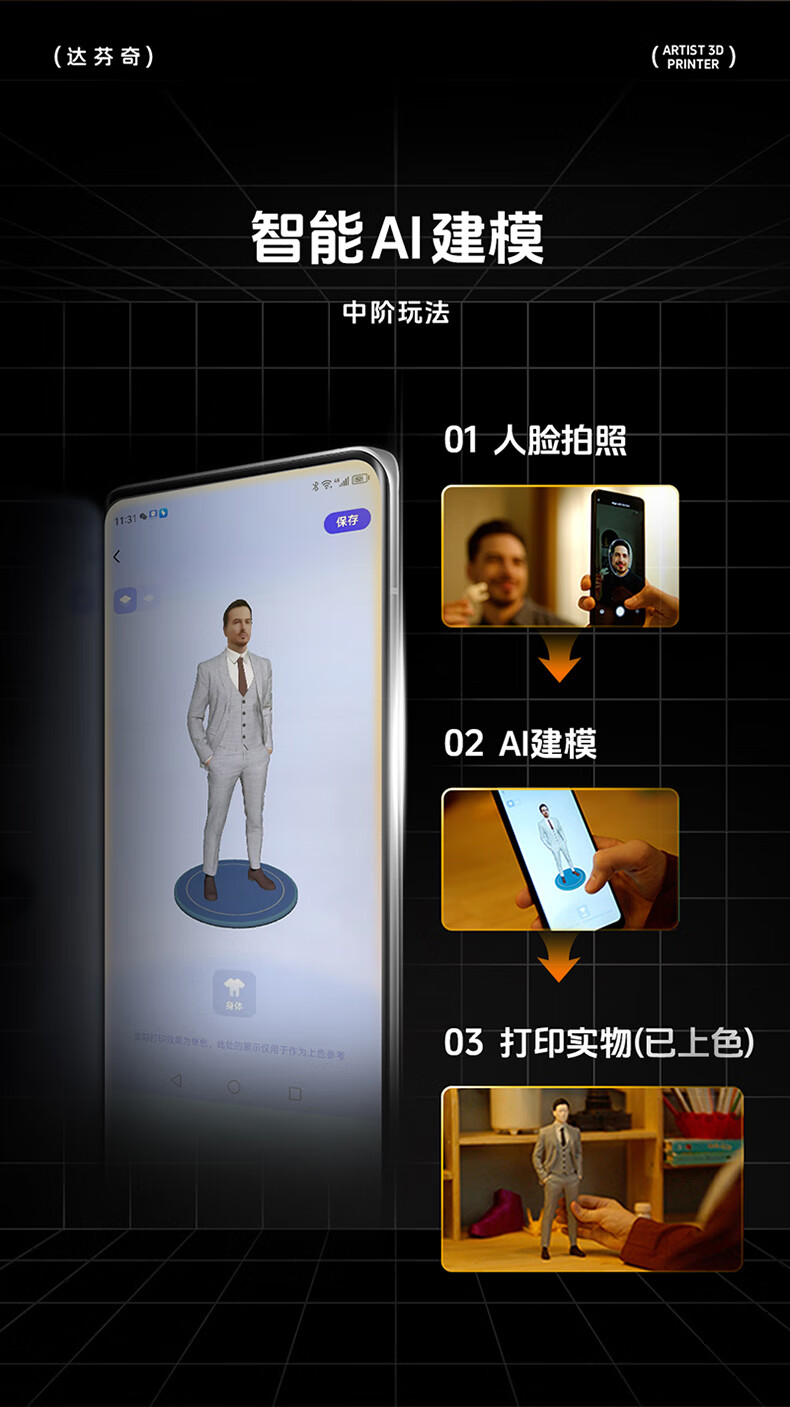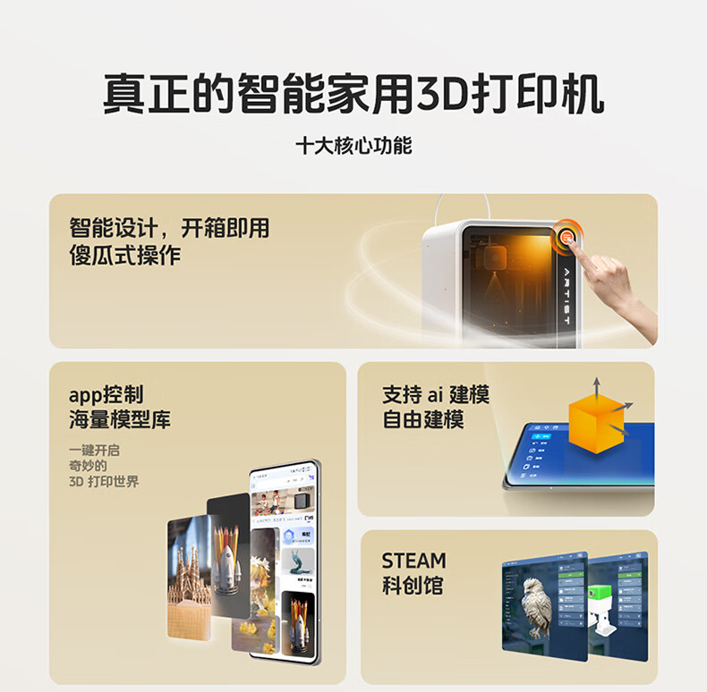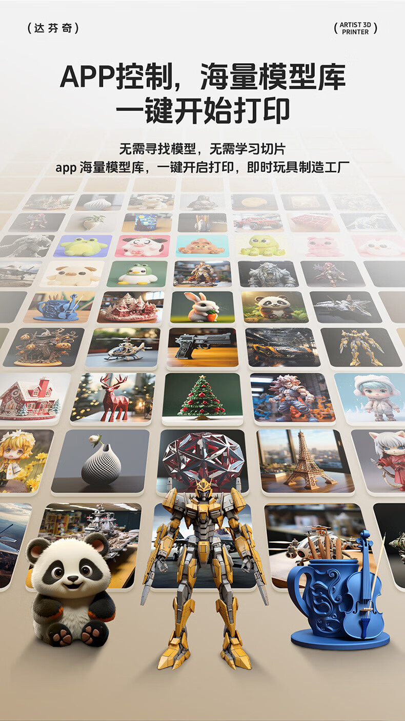 达芬奇 3D打印机 家用Ai拍照建模海量模型一键打印高精度桌面级智能教育DIY立体大人小孩可用 【含耗材250克】