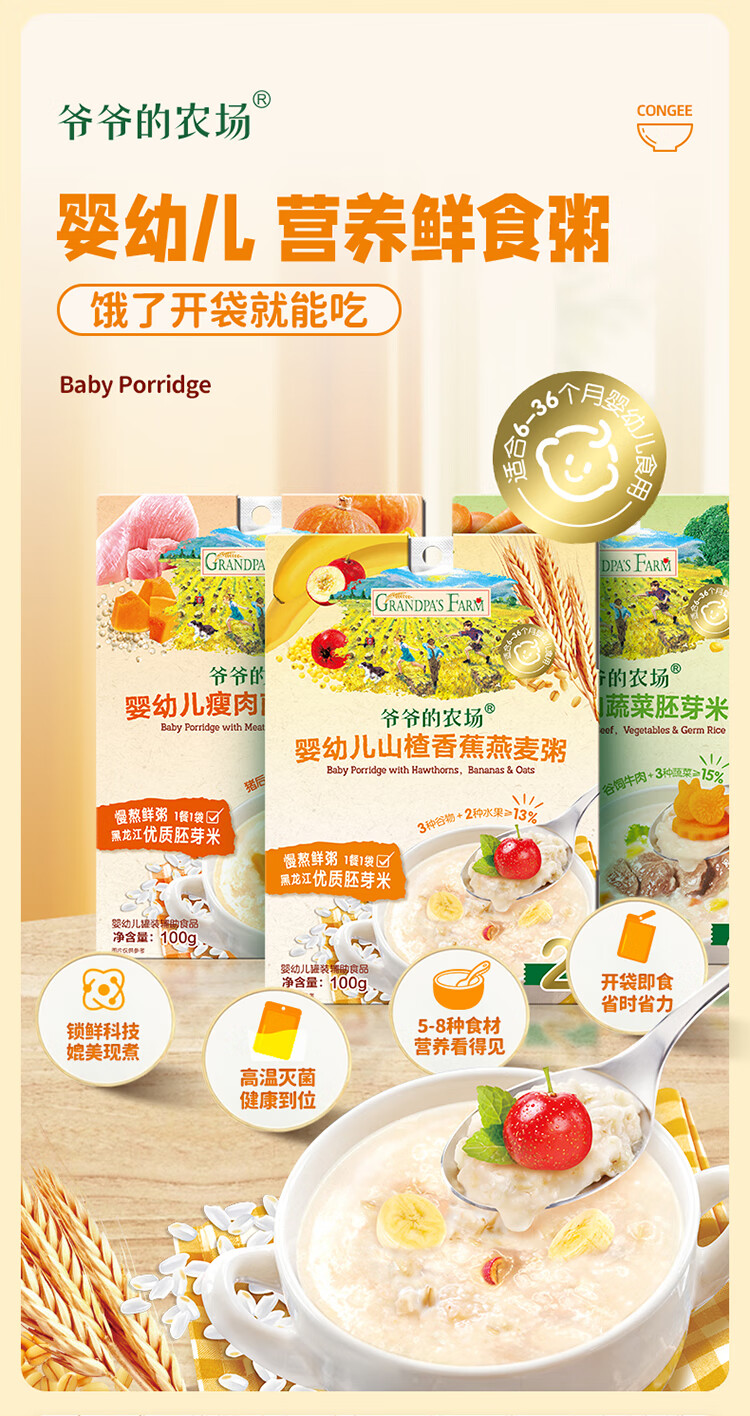 爷爷的农场婴幼儿牛肉蔬菜胚芽米粥100g