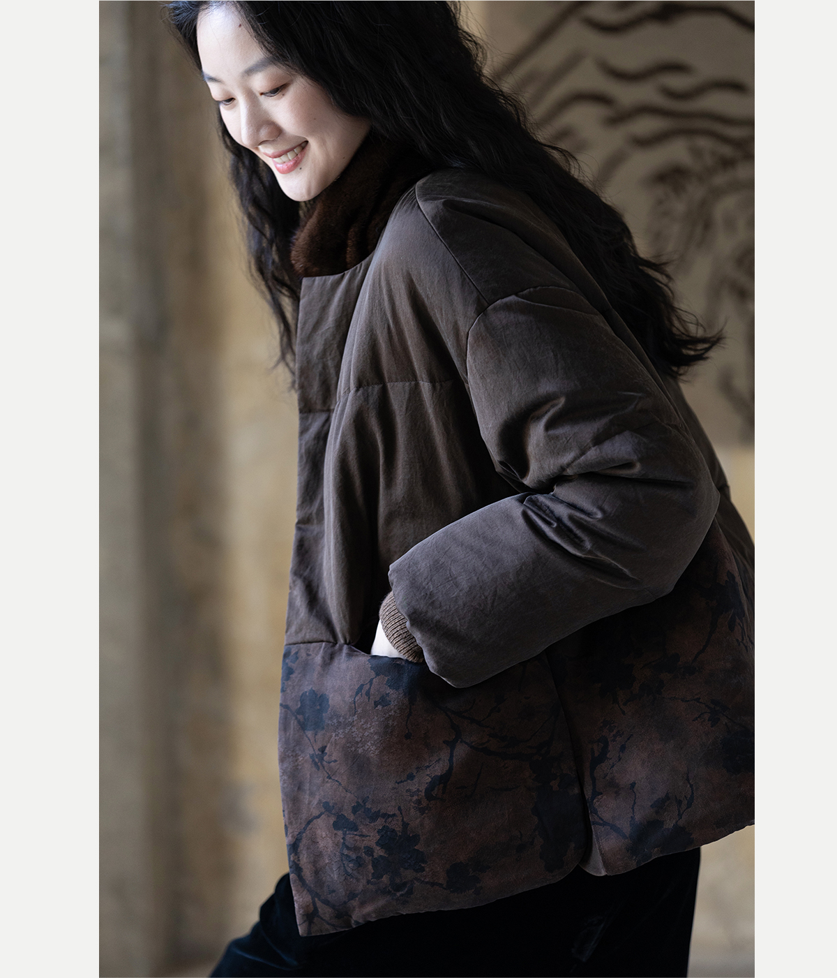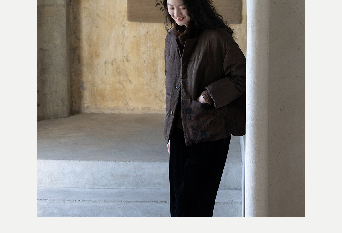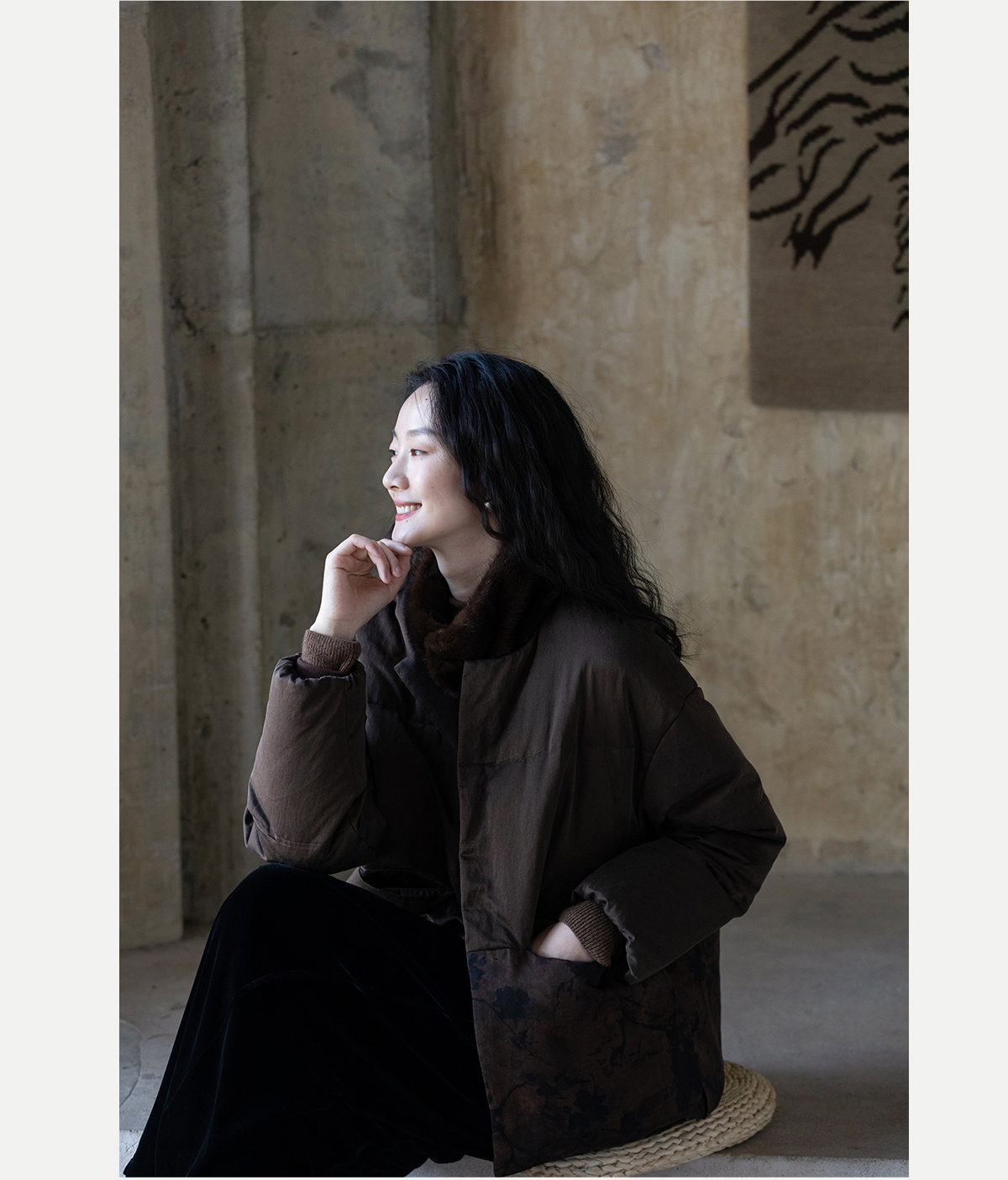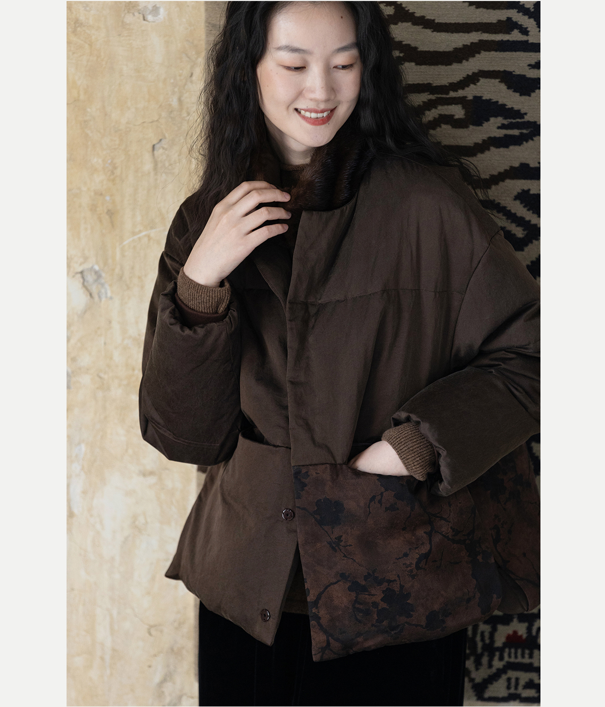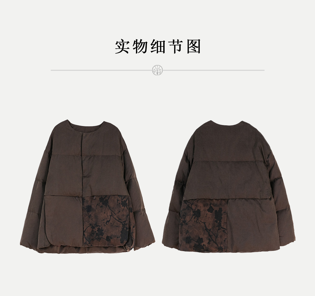 牧衣游原创 香云纱拼接95红嘴雁绒羽绒服女古朴文艺保暖外套 苍沐