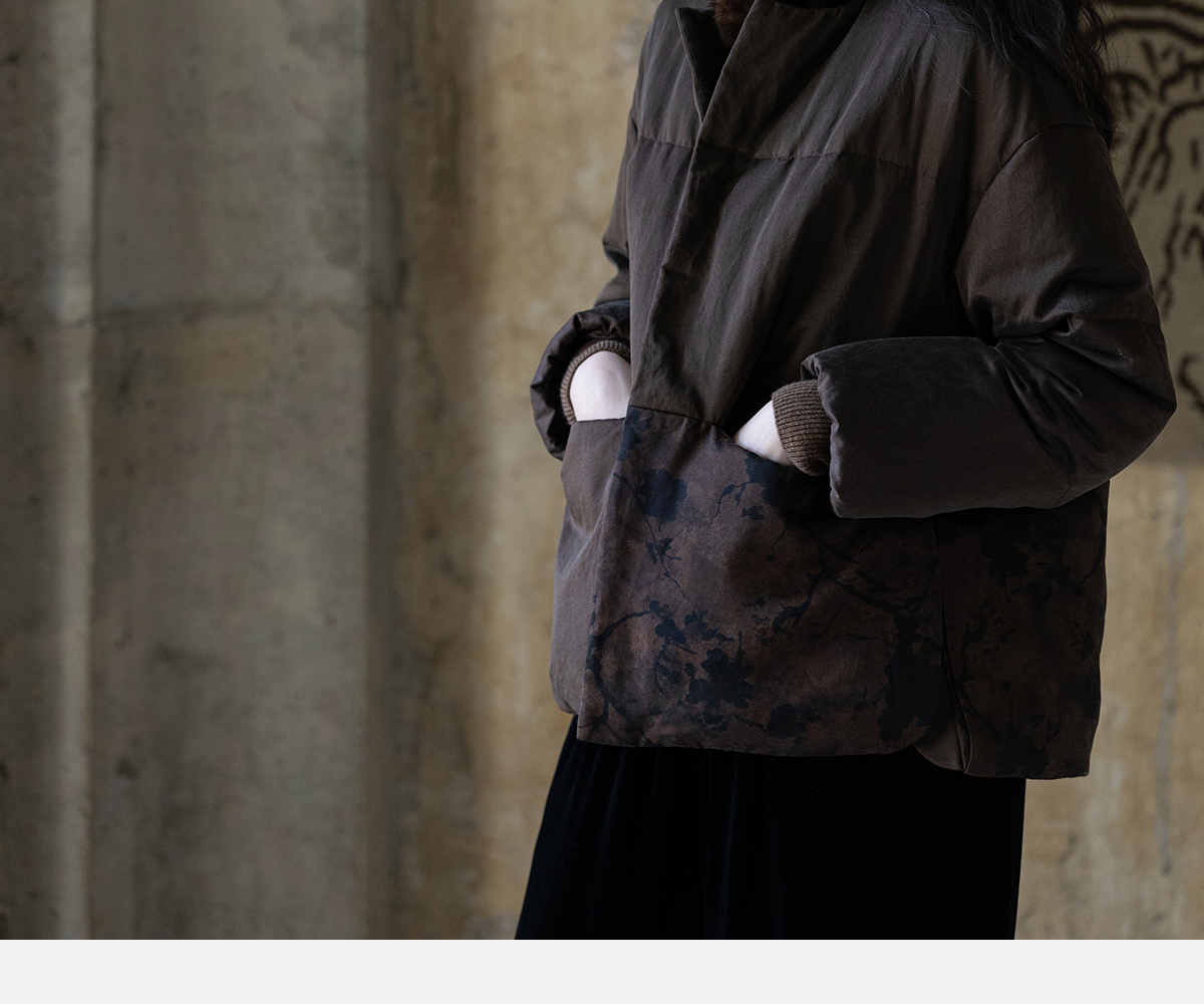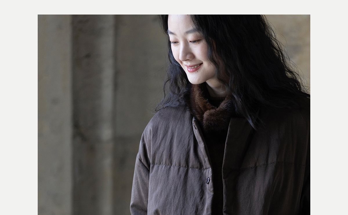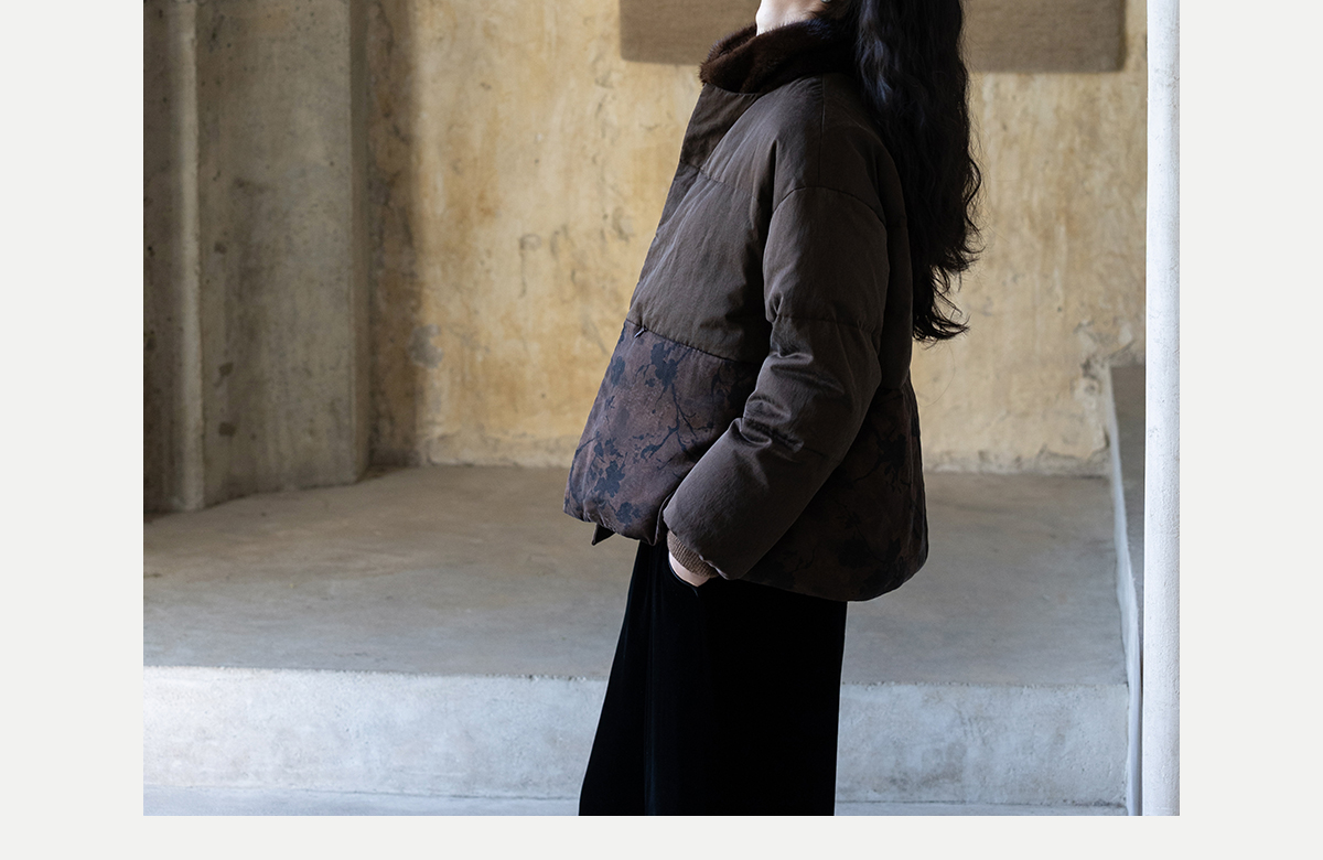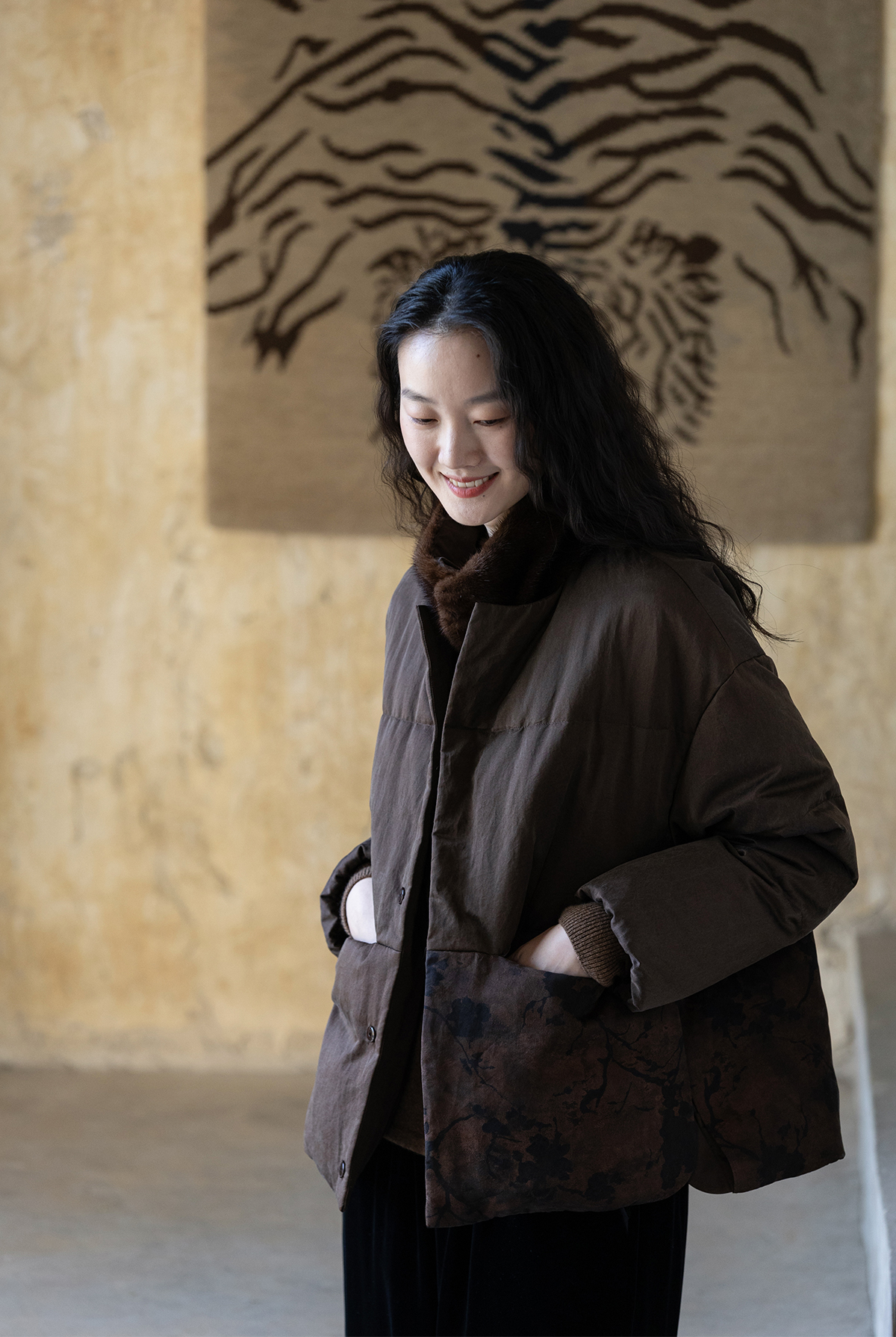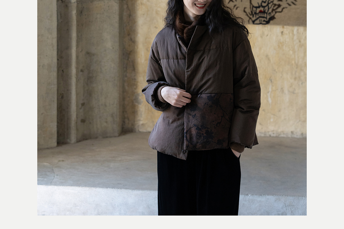 牧衣游原创 香云纱拼接95红嘴雁绒羽绒服女古朴文艺保暖外套 苍沐