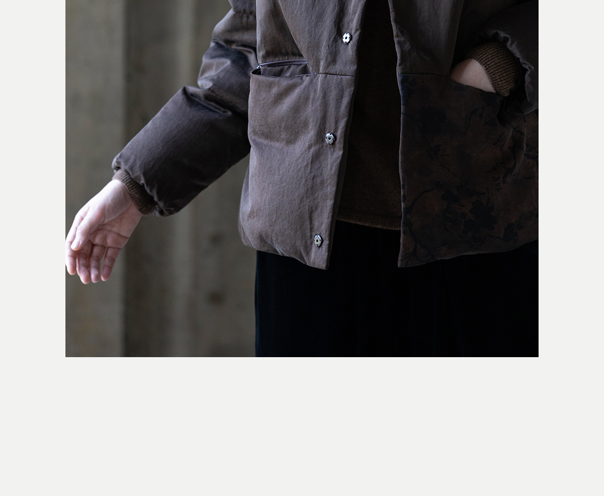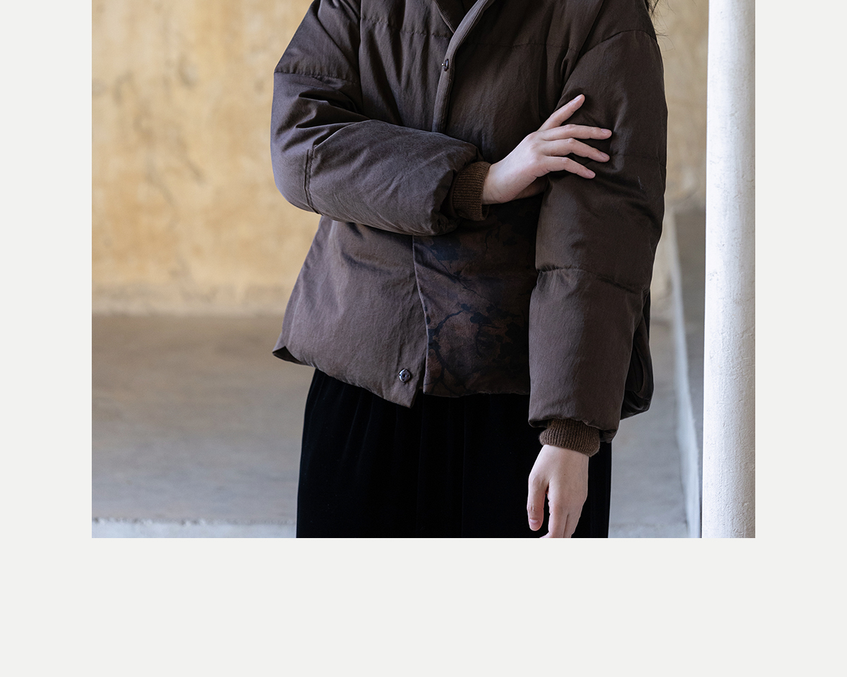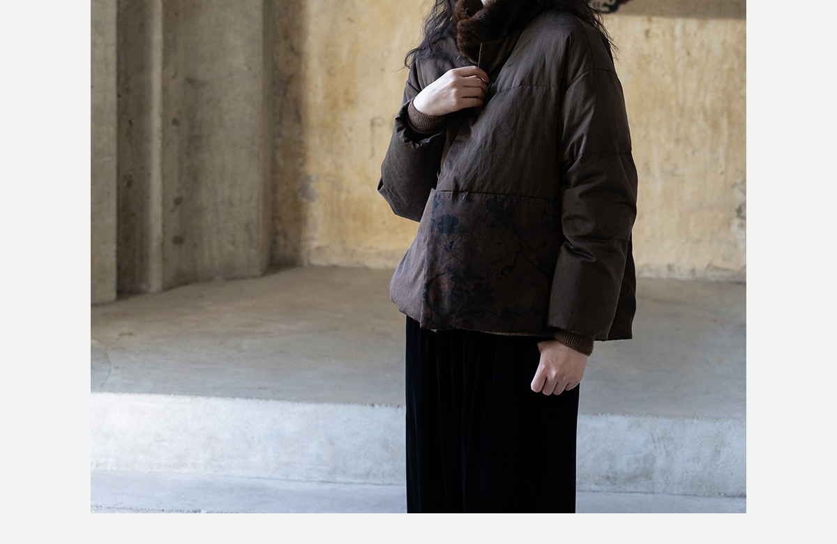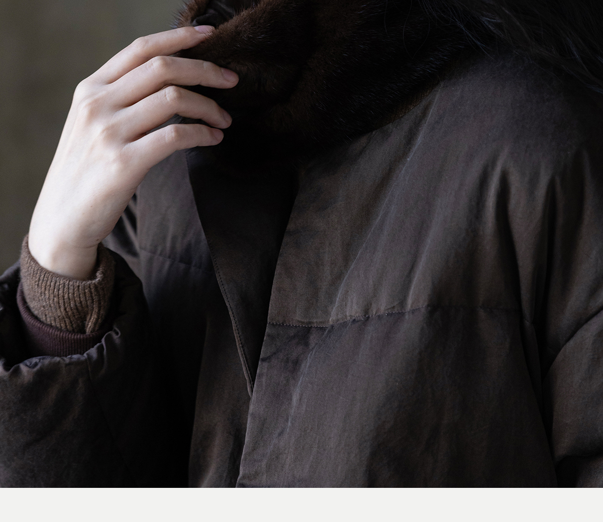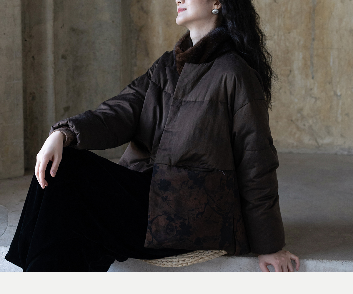牧衣游原创 香云纱拼接95红嘴雁绒羽绒服女古朴文艺保暖外套 苍沐