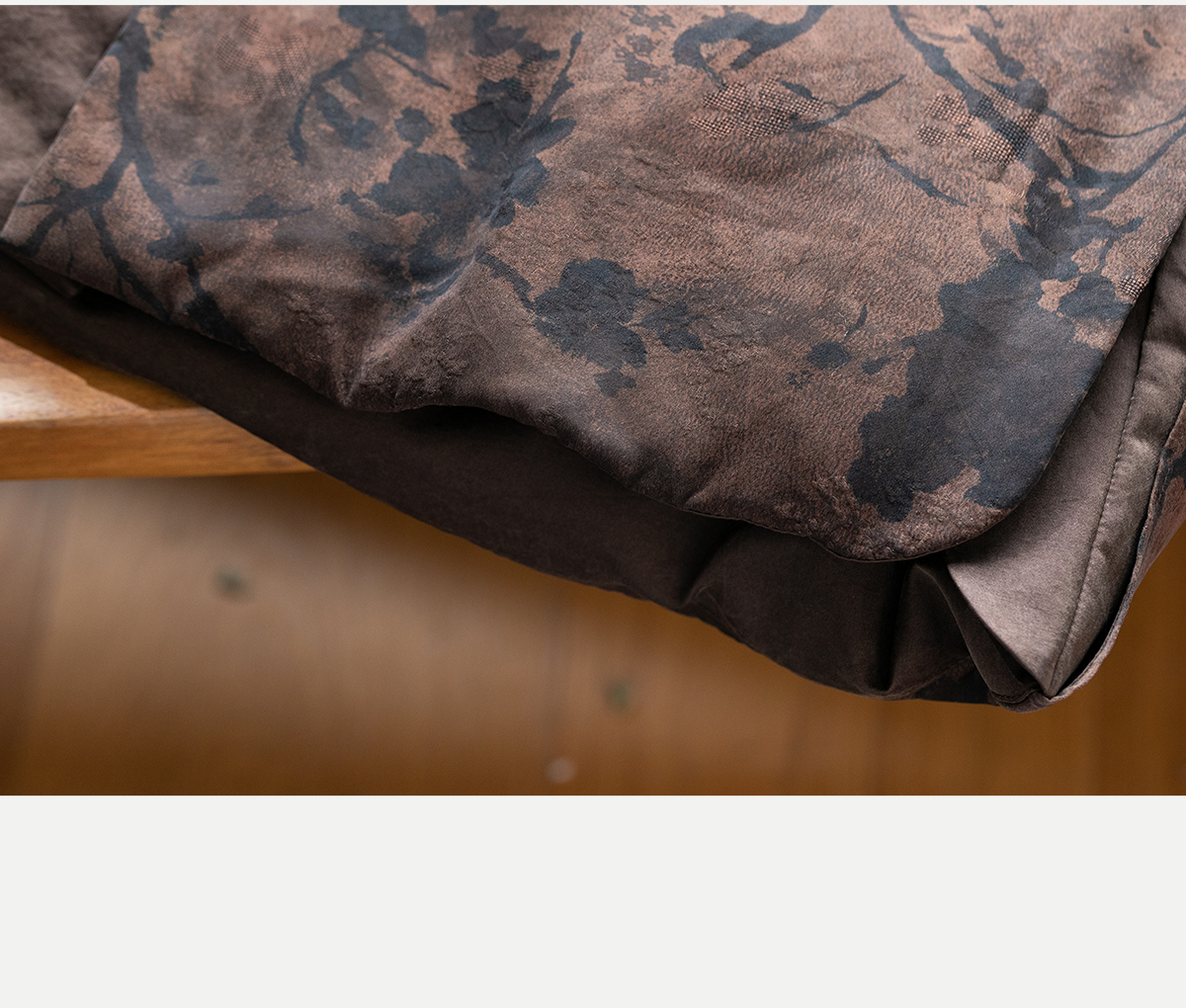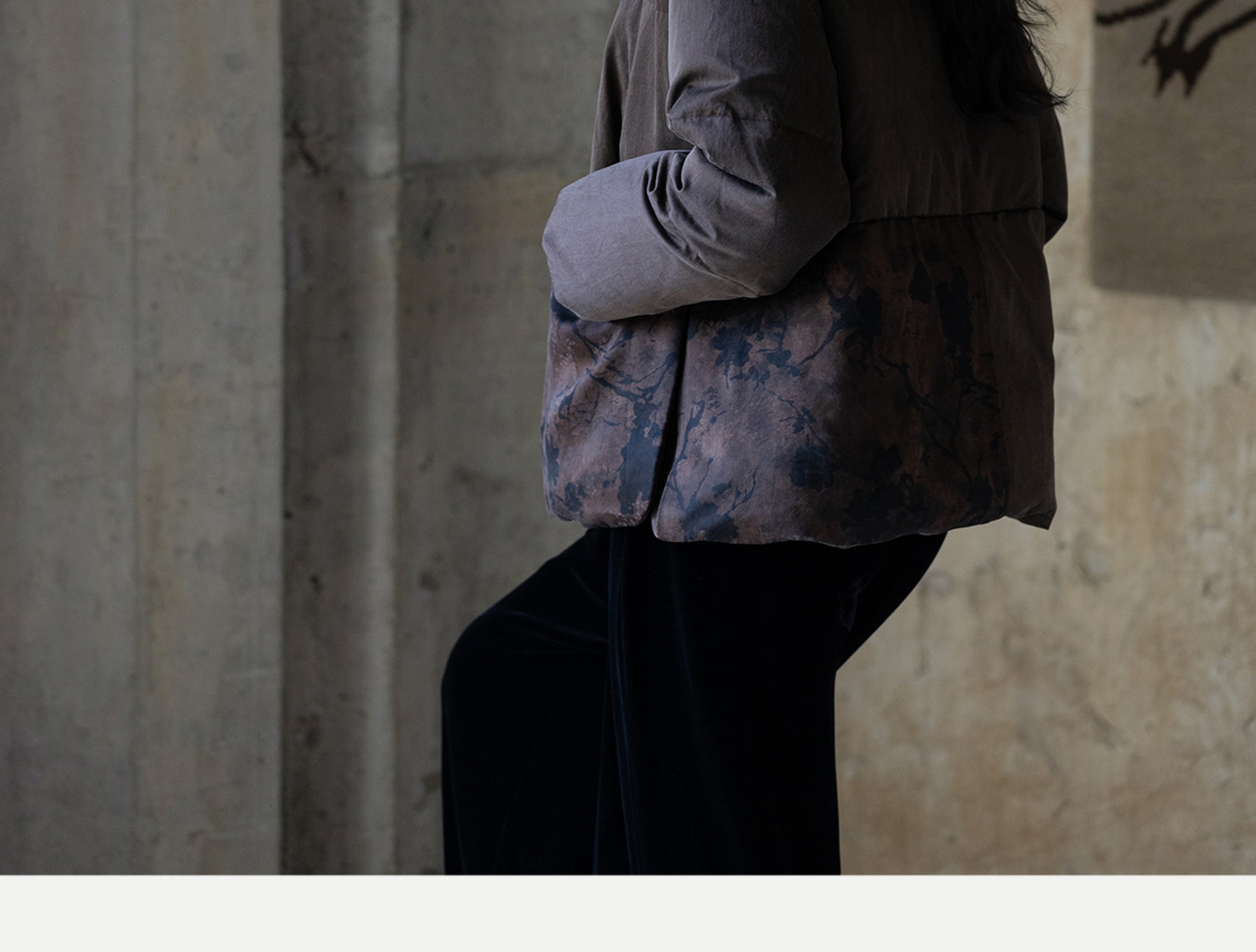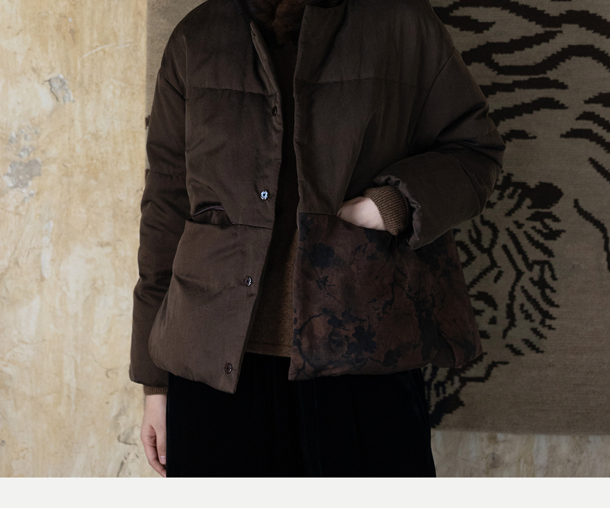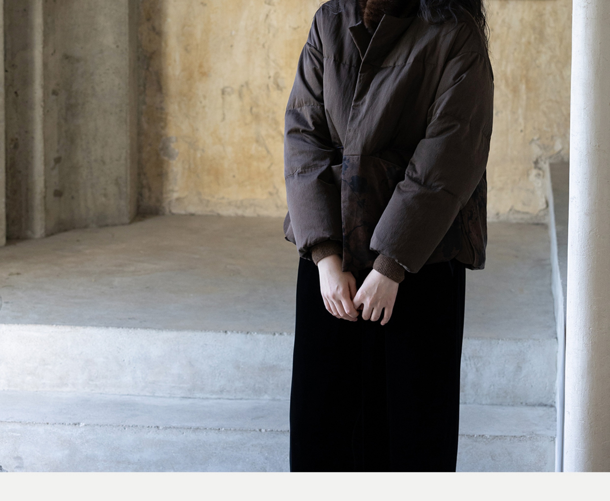 牧衣游原创 香云纱拼接95红嘴雁绒羽绒服女古朴文艺保暖外套 苍沐