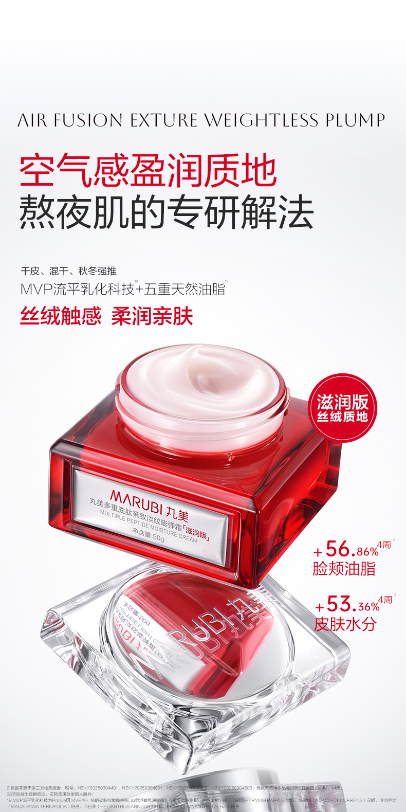 【年终狂欢盛典】【重磅新品】【小红笔面霜】丸美多重胜肽紧致淡纹嘭弹霜50g 1夜速修熬夜脸 2周淡化熬夜纹