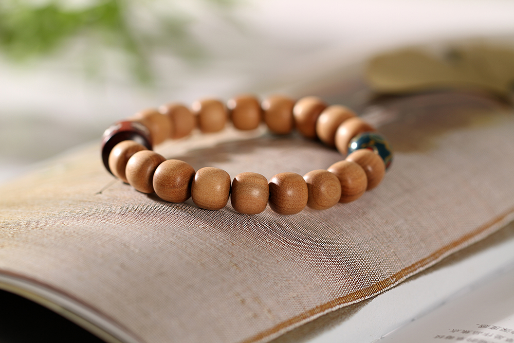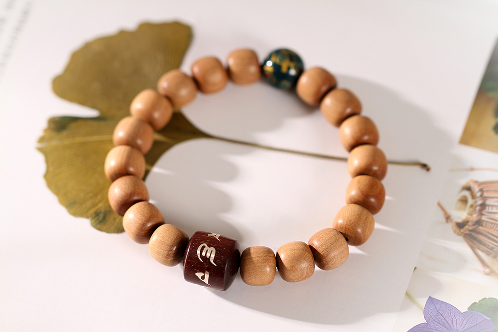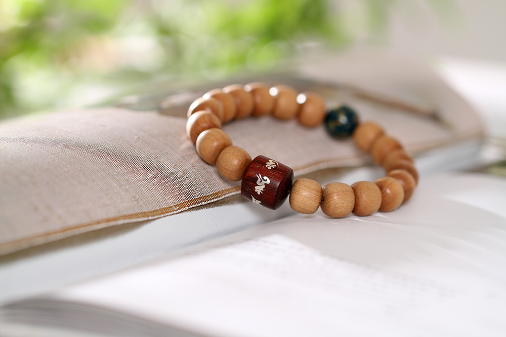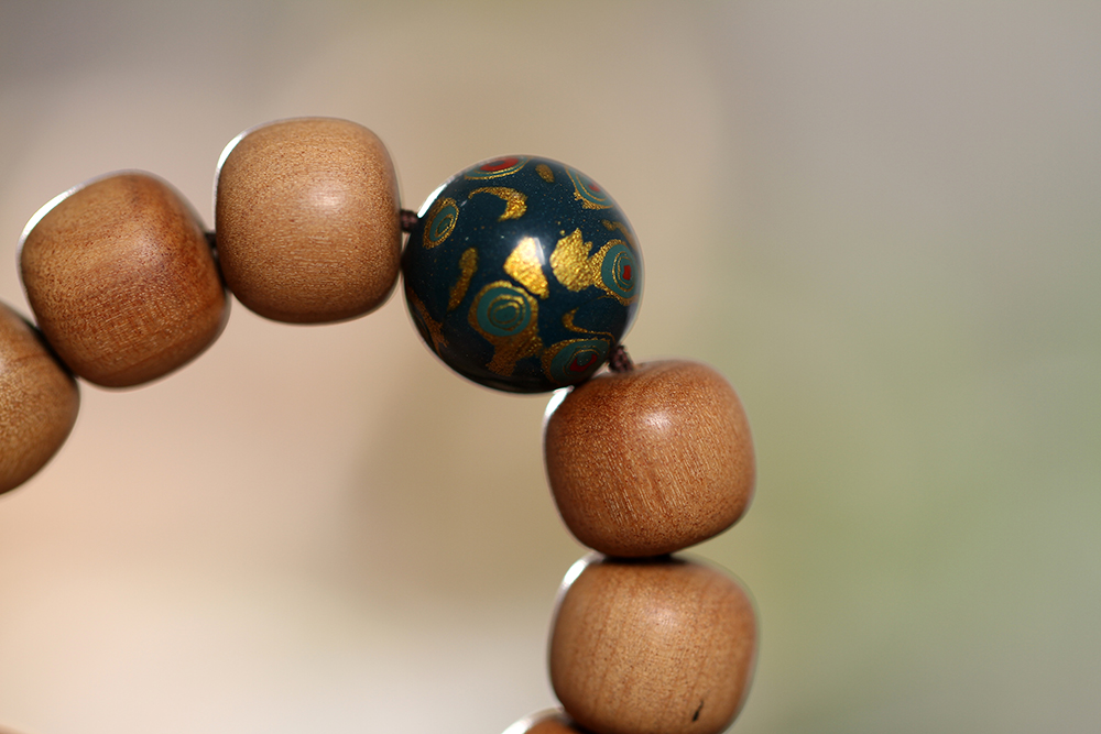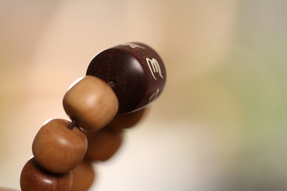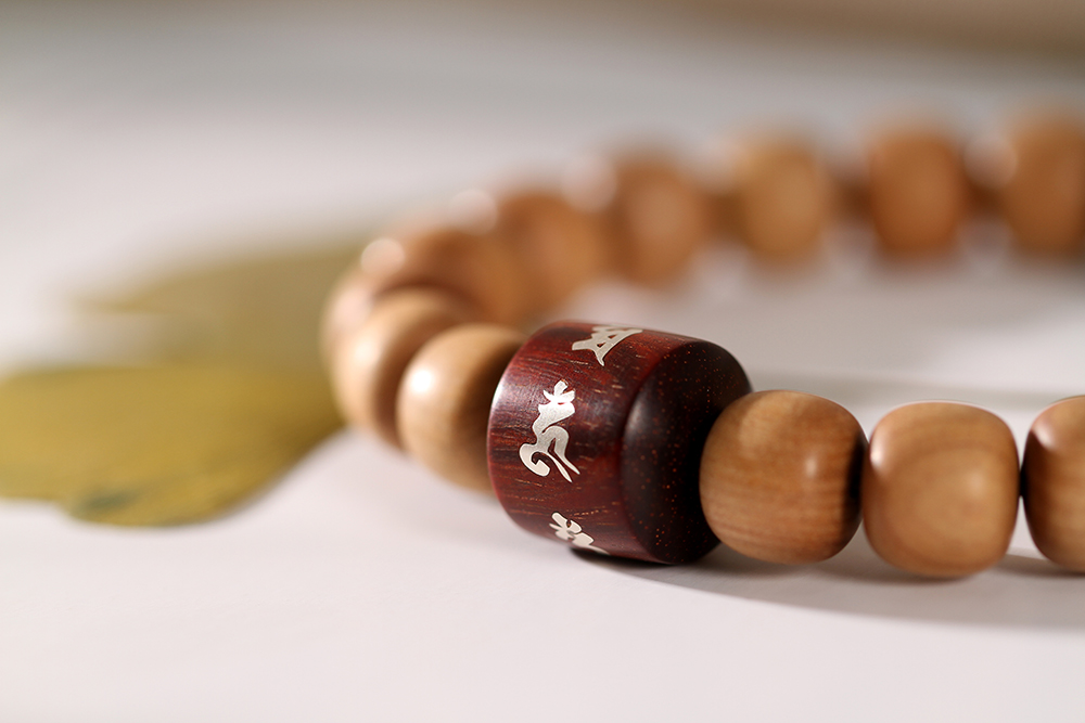 搭配:以印度老山檀香为主,搭配非物质文化遗产--12mm大漆,紫檀镶银六字真言