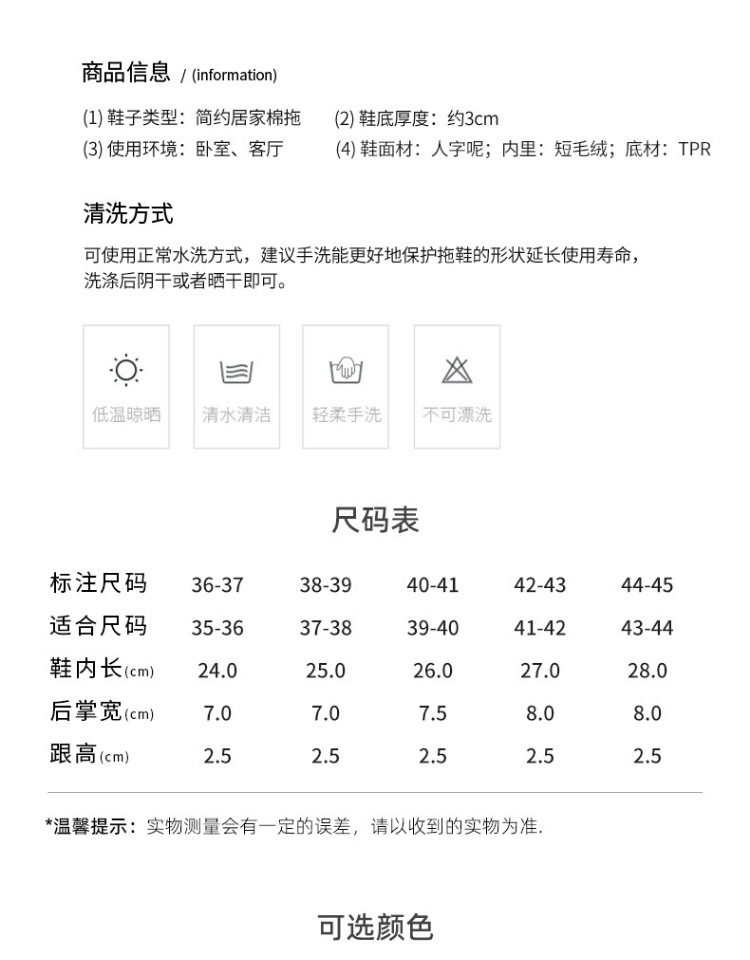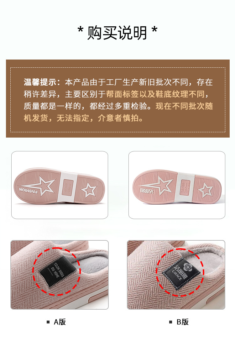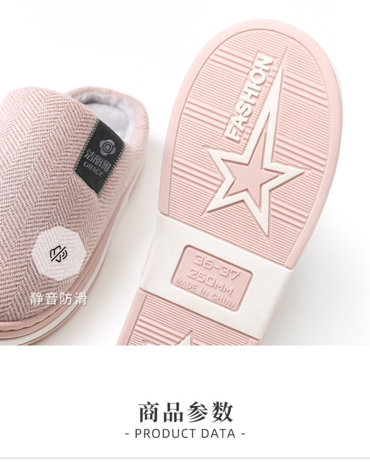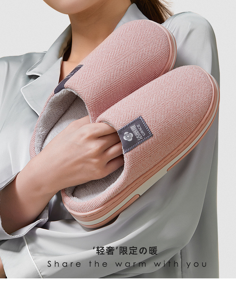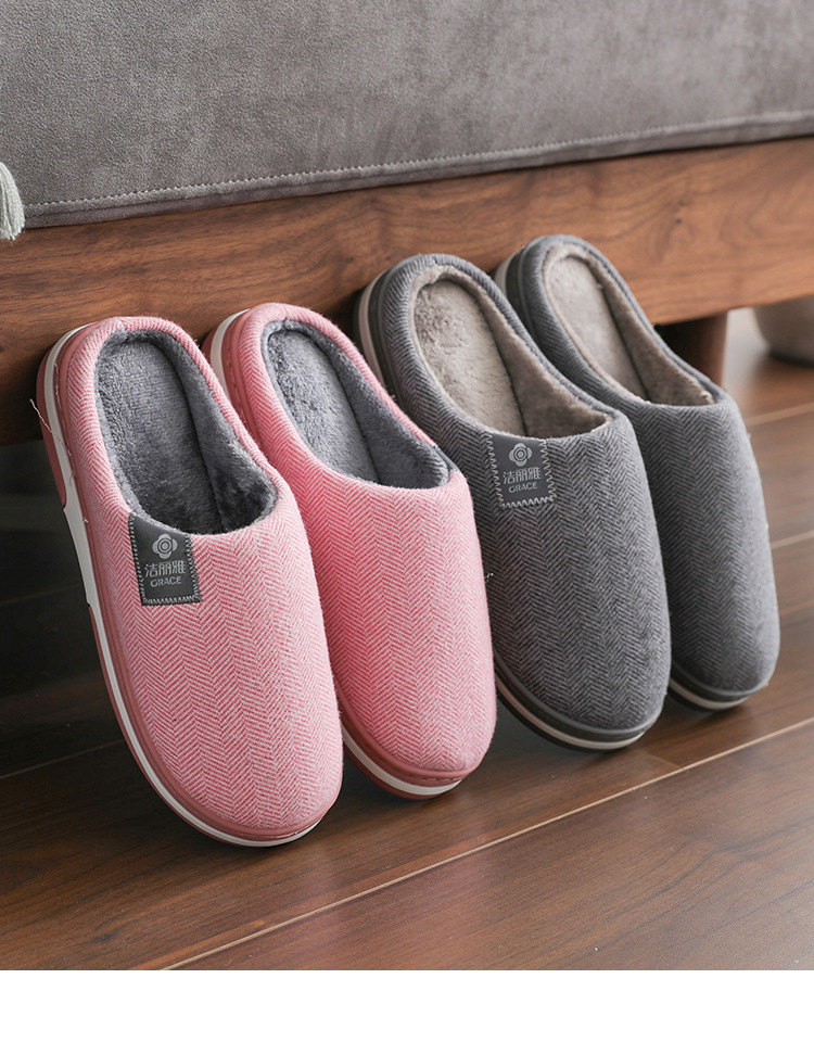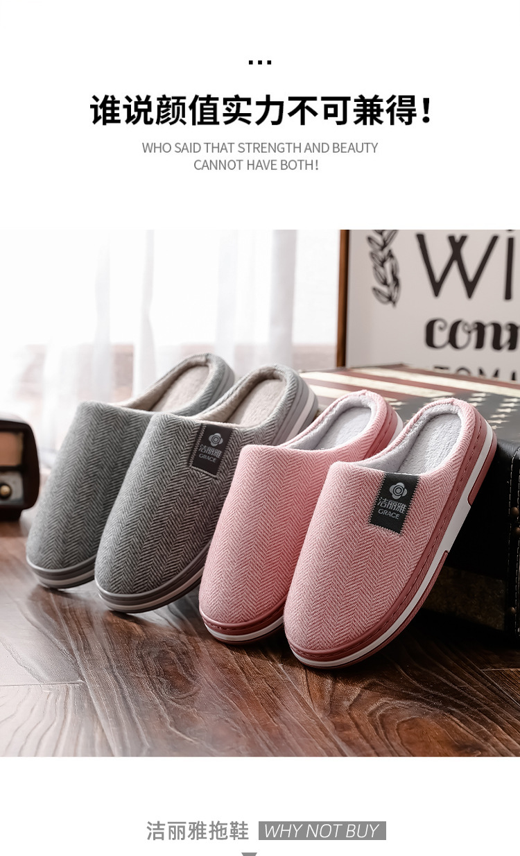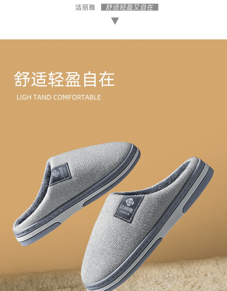 洁丽雅棉拖鞋女款秋冬季室内居家用情侣防滑保暖外穿毛绒拖鞋男士棉鞋