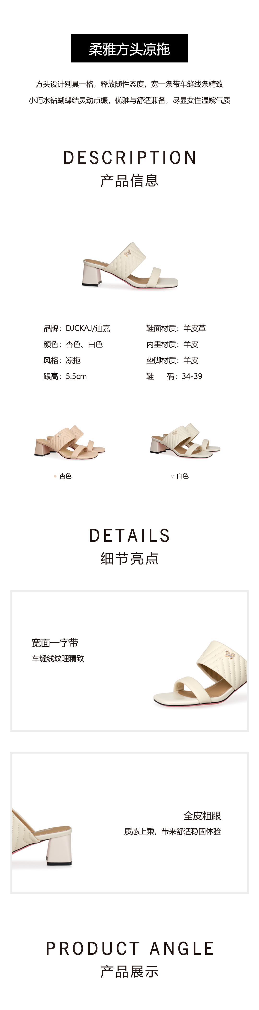 豪麟名鞋奥莱迪嘉女鞋凉拖羊皮革DJELA51WL018白色 原价1660元