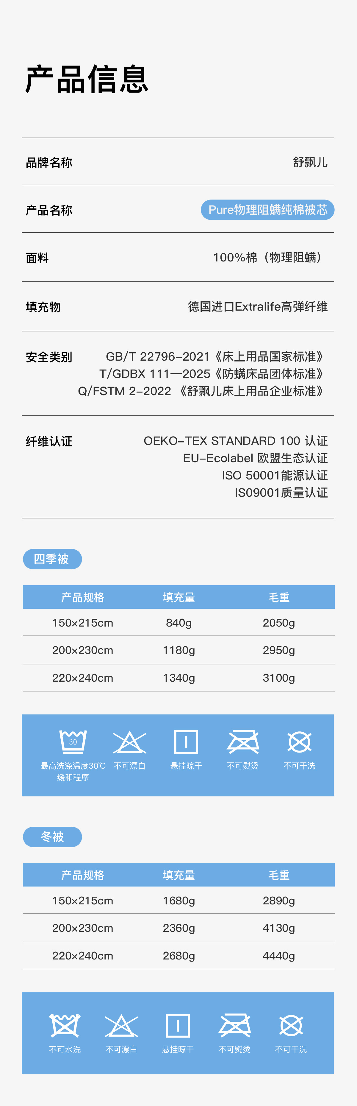 舒飘儿pure物理阻螨纯棉被芯【佳人严选】