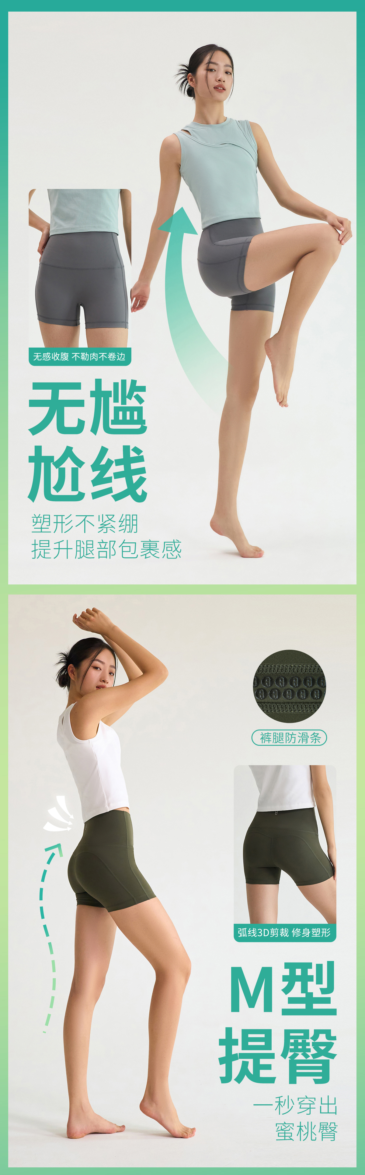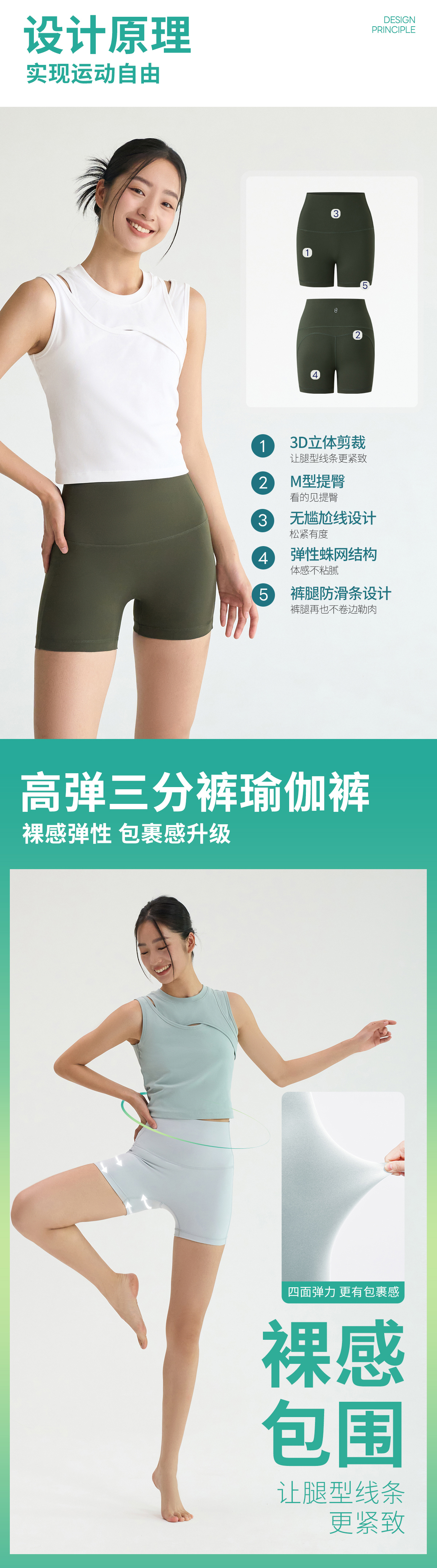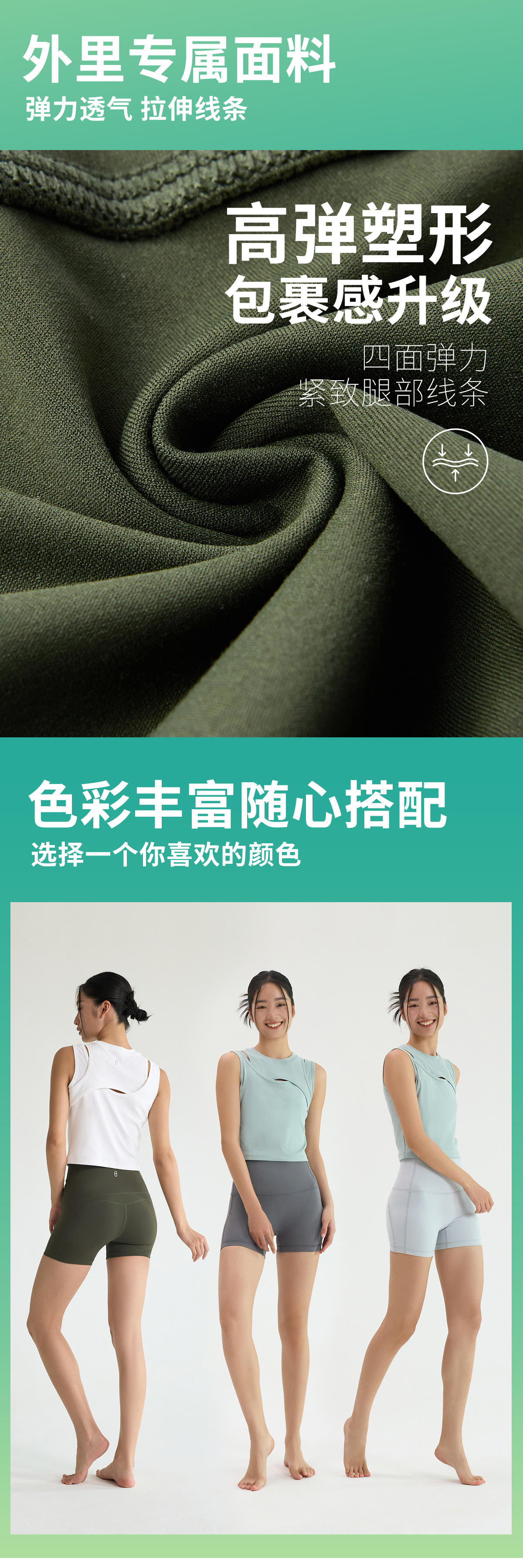 外里新款女式瑜伽三分裤健身训练短裤可外穿收腹提臀安全裤