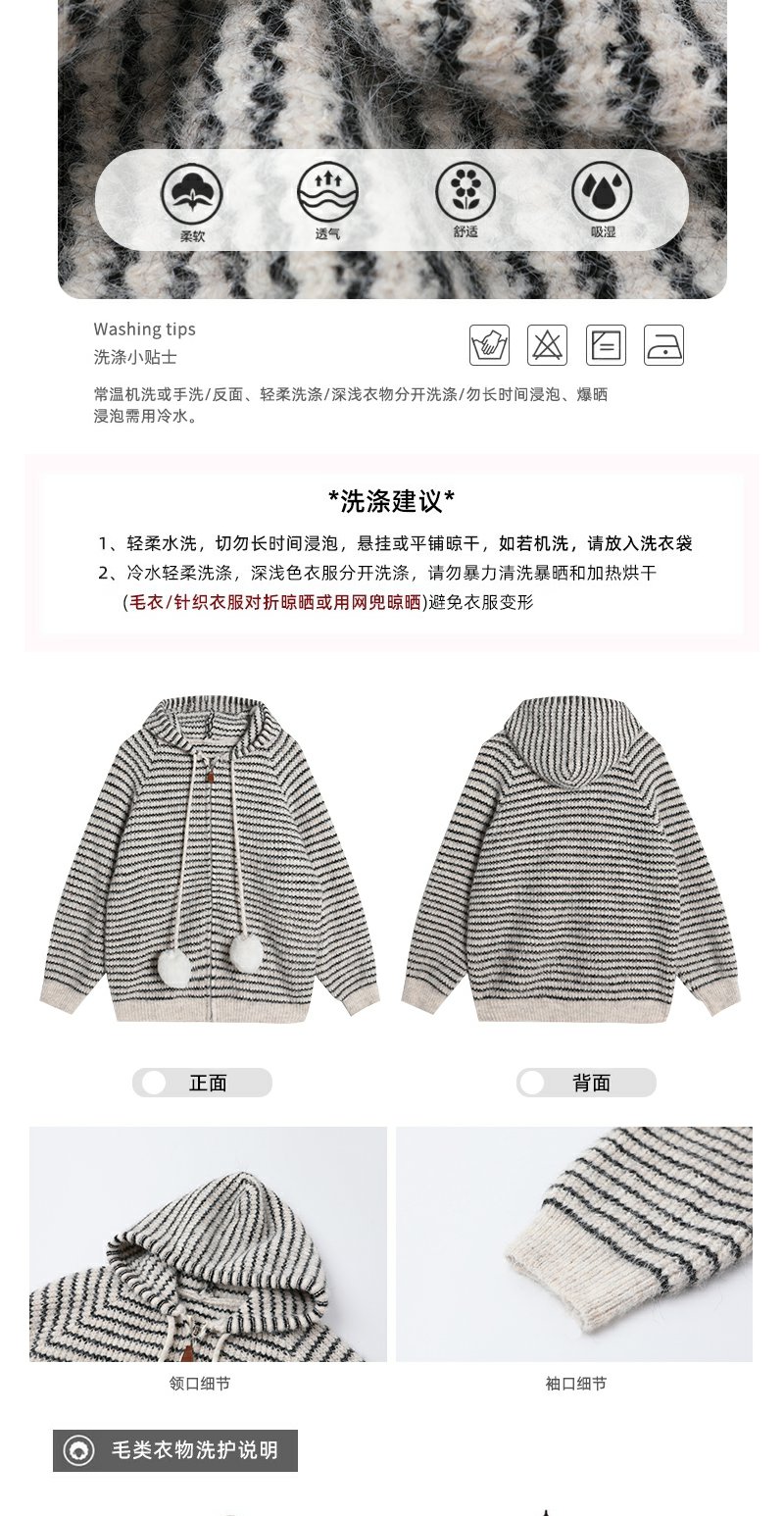 <曾小咸推荐> 2.5 现货秒杀 !微信超特价!条纹连帽毛衣外套 日常209.99 立减120 秒杀89.99!!