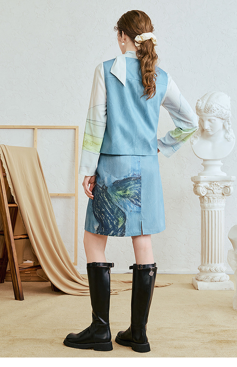 两三事星河行川2025夏季新款趣味手工钩花挂件装饰印花a字半身裙
