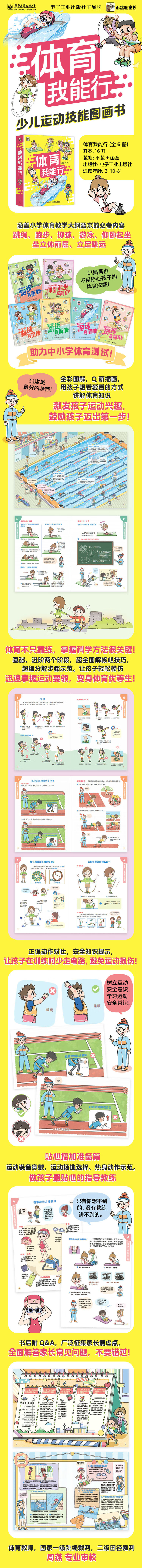 本系列涵盖小学体育教学大纲要求的必考内容:跳绳、掷球、跑步、仰卧起坐/坐位体前屈、立定跳远和游泳。帮助小学生和预备小学生轻松激发运动兴趣,快速掌握运动技巧,全面提升运动能力,顺利达标体育测试,助力中考体育成绩!每册分为准备活动、必学技巧、进阶技巧、Q&A,四大模块。调理清晰,步骤简明,配以卡通插图,孩子读起来不枯燥,家长讲起来能听懂。准备活动模块包括指导选购运动装备、选择运动场地、赛前热身运动和安全知识讲解。必学技巧模块包括小学体育教学大纲要求的必考内容,即基础体育知识和运动技巧。进阶技巧模块是在基础技巧掌握的基础上做延伸训练,为中考体育打基础。Q&A模块是写给家长的话,解答家长和小朋友运动生活中的常见问题。