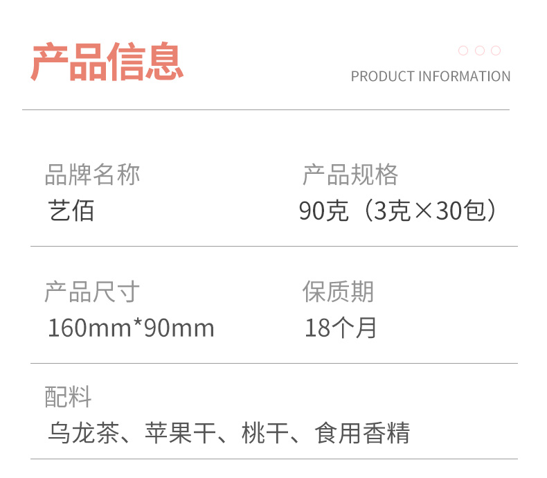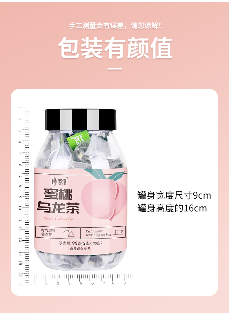 艺佰 蜜桃乌龙 水果花茶袋泡茶白桃乌龙茶包办公茶可冷泡茶30包/90克 100019102680