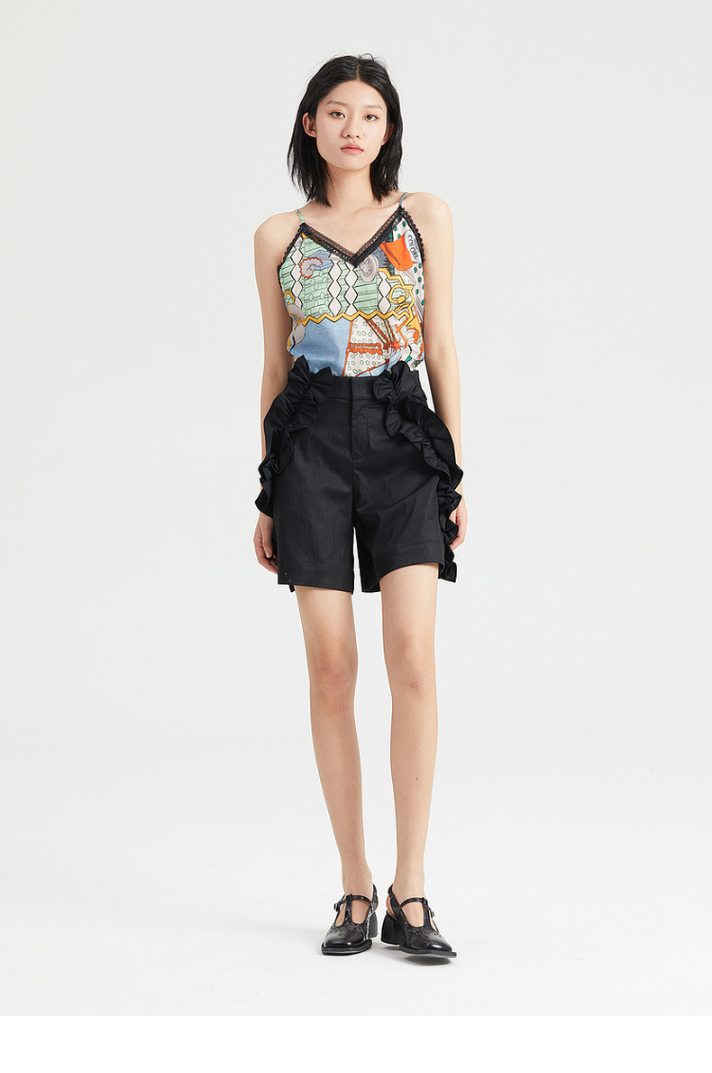 谜底2023夏季新款纯棉印花蕾丝花边V领细吊带内搭上衣女236MN7093