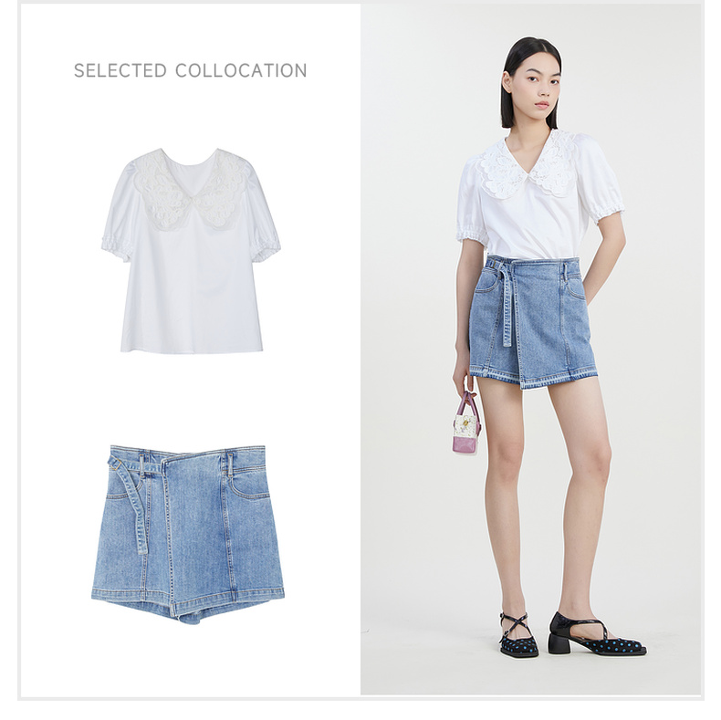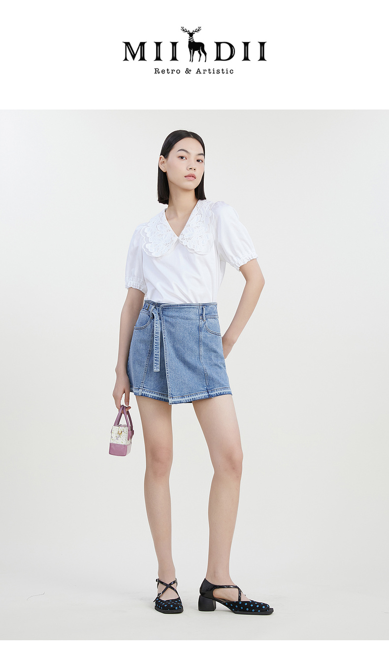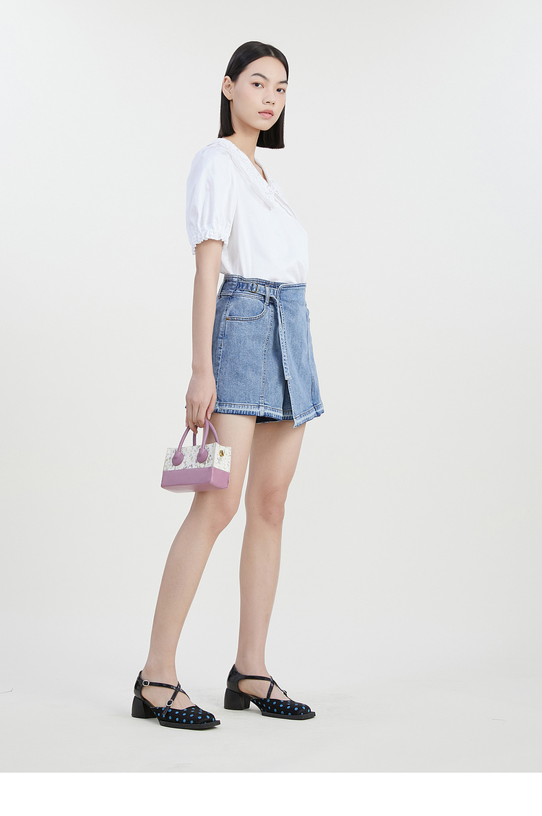 谜底牛仔短裤女2023夏季新款简约时尚百搭A型修身裙裤232MK0564