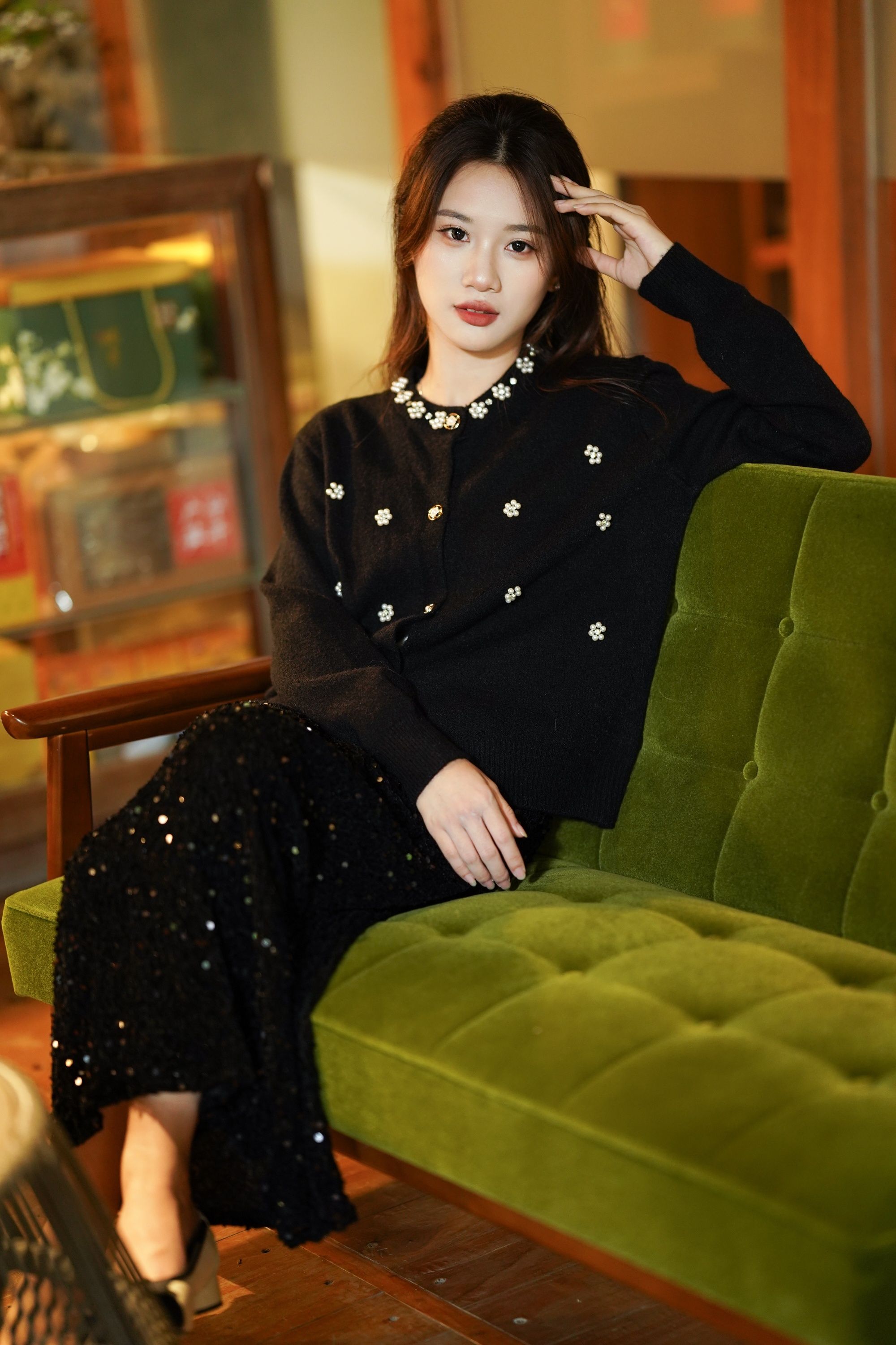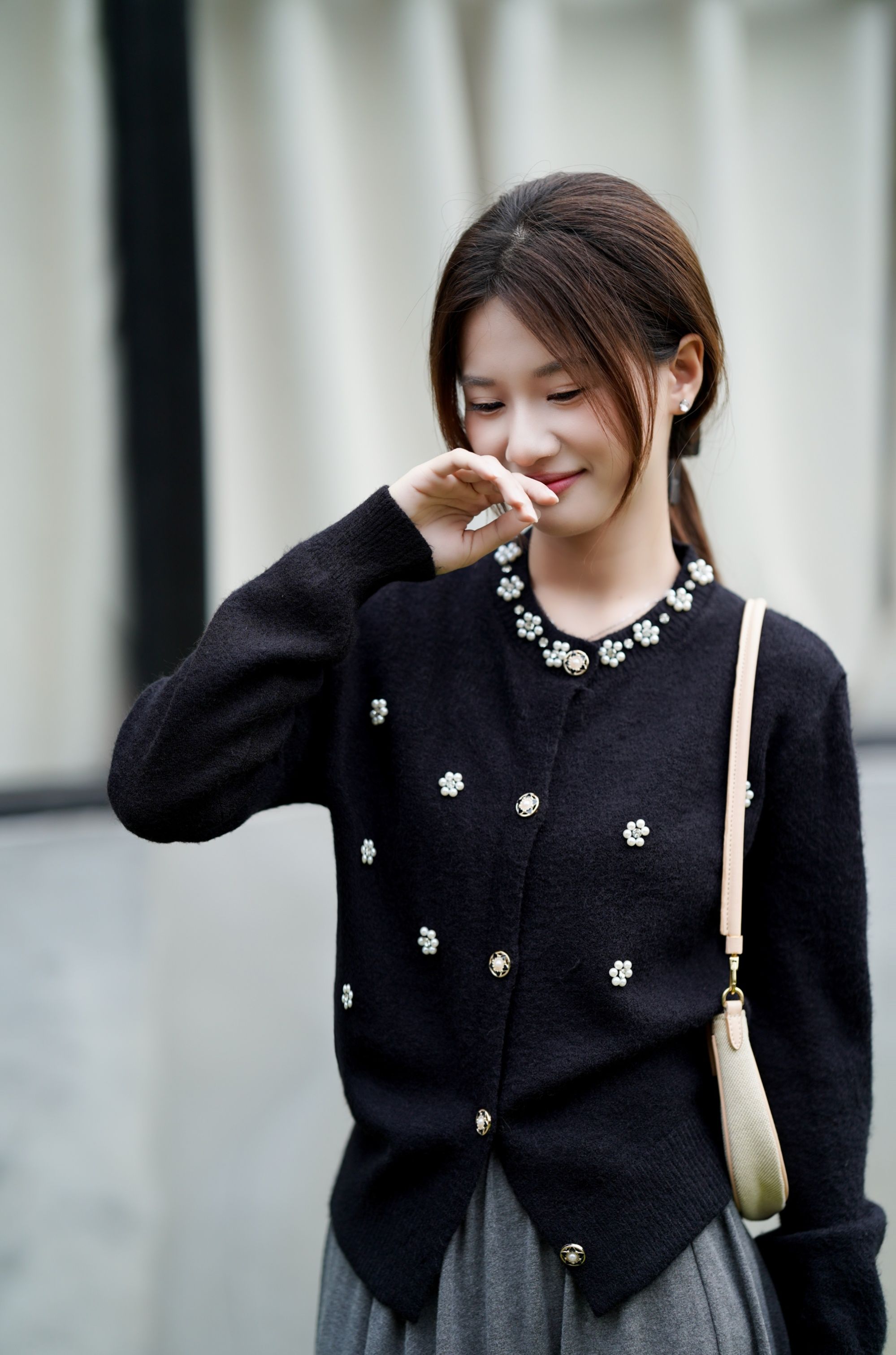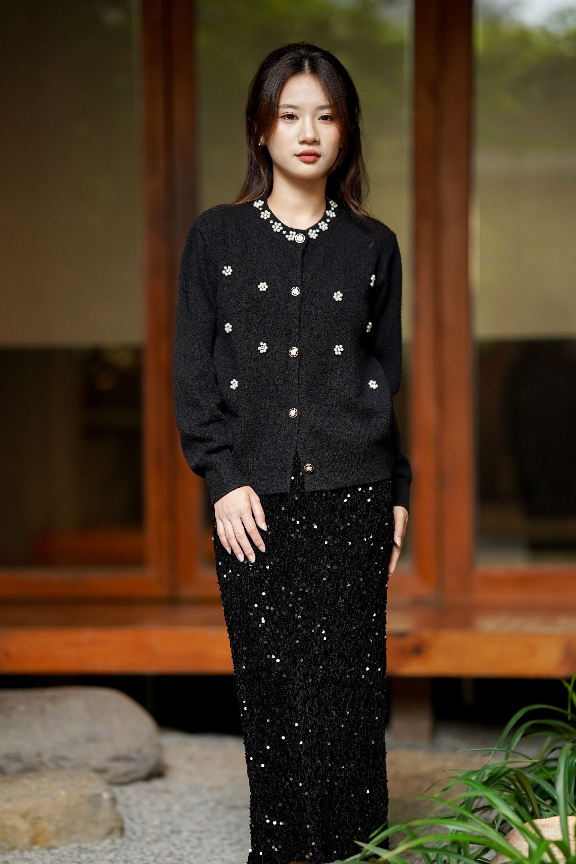 惊艳全场的黑色钉珠钻石高定开衫‼️‼️花朵样式钉珠【LONGNVFAIR 黑色珍珠钻石钉珠针织开衫】超显贵气‼️工艺感拉满了!还原香奶奶中古感~