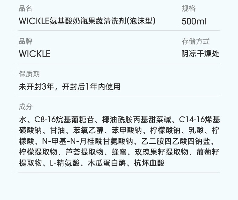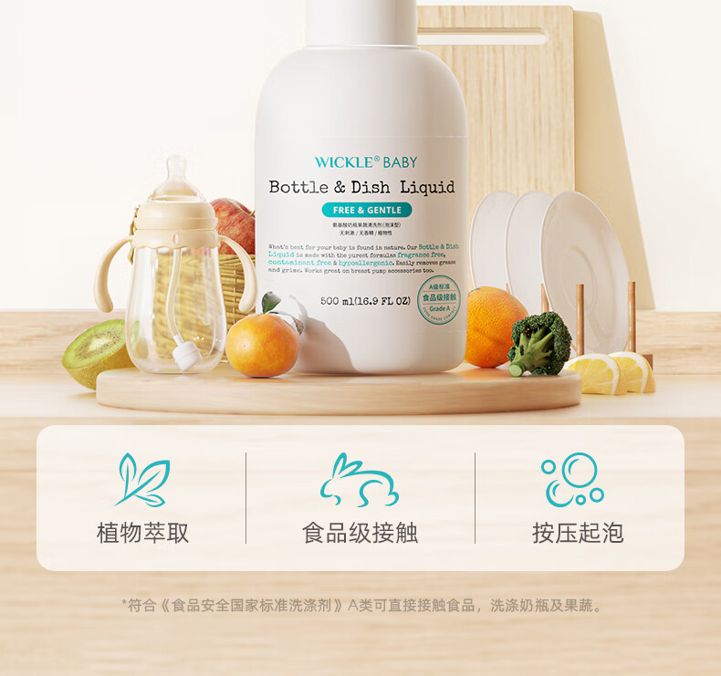 wickle婴儿专用洗奶瓶清洁剂清洗液宝宝果蔬清洗剂水果玩具清洗