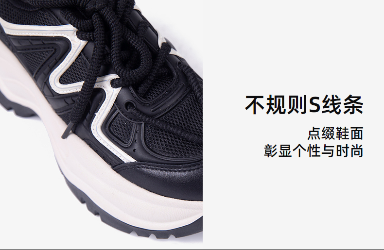 千百度厚底时尚德训鞋女款韩系增高复古运动休闲鞋A25405101