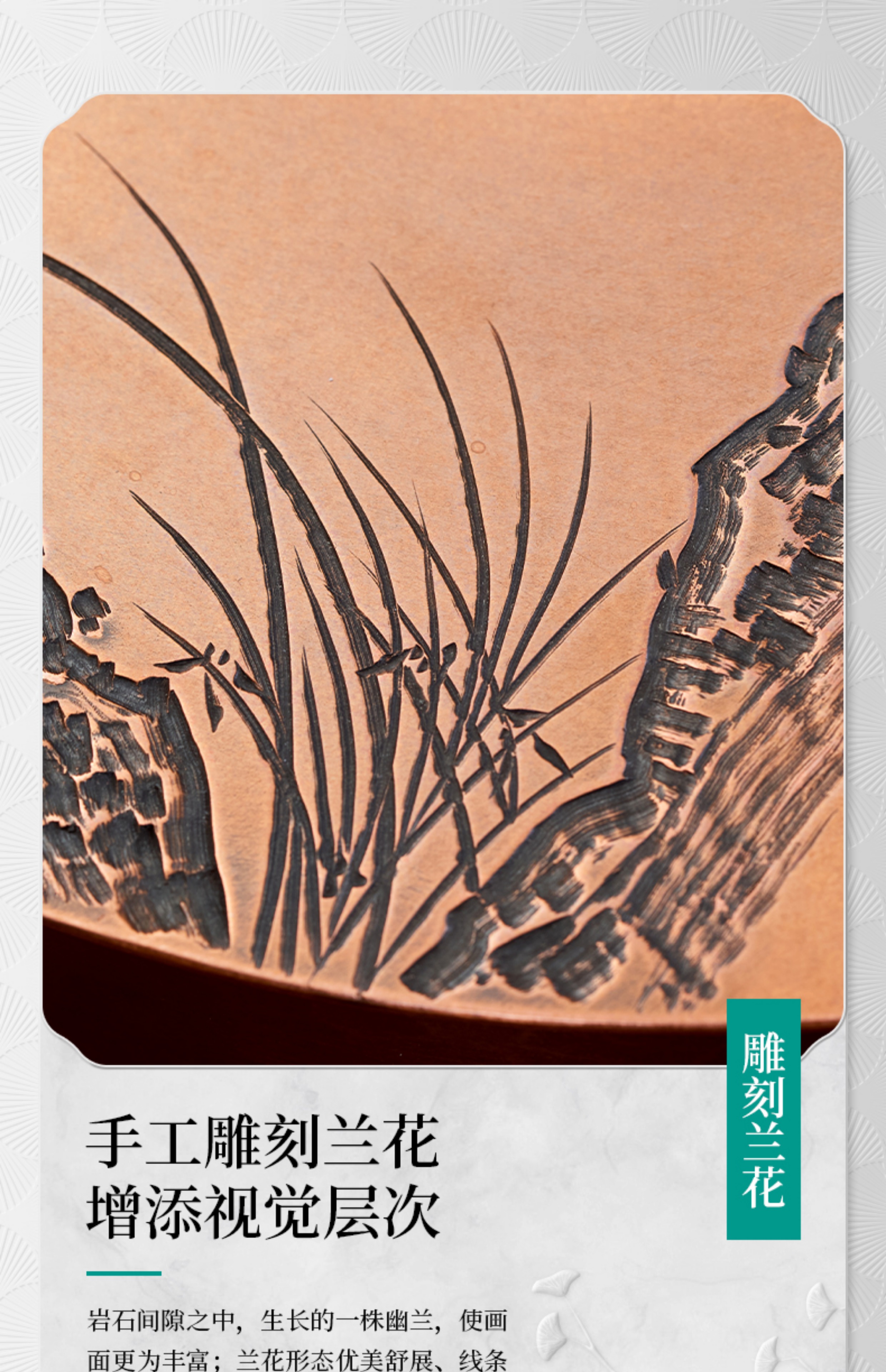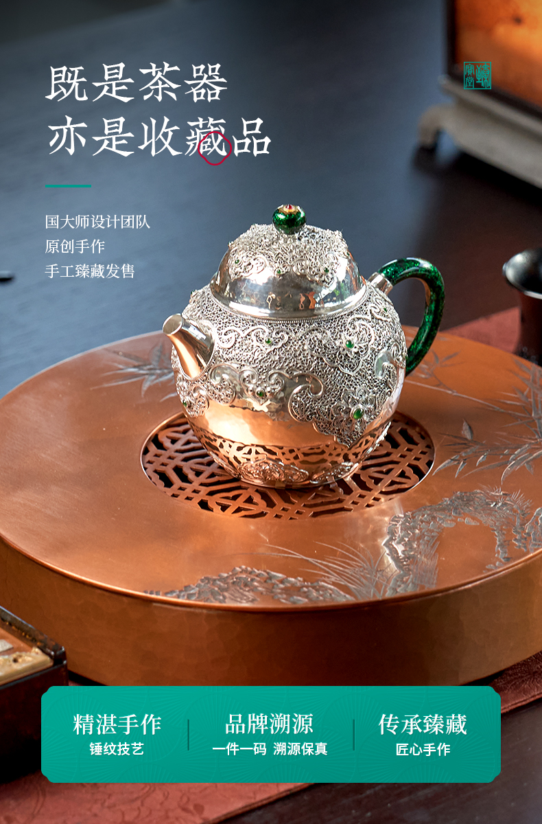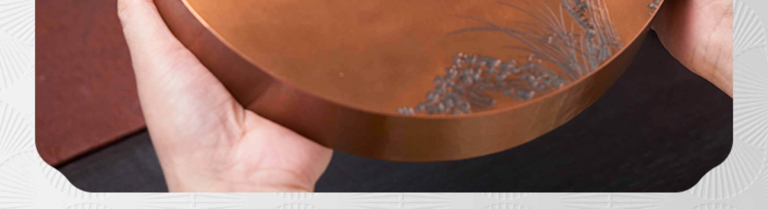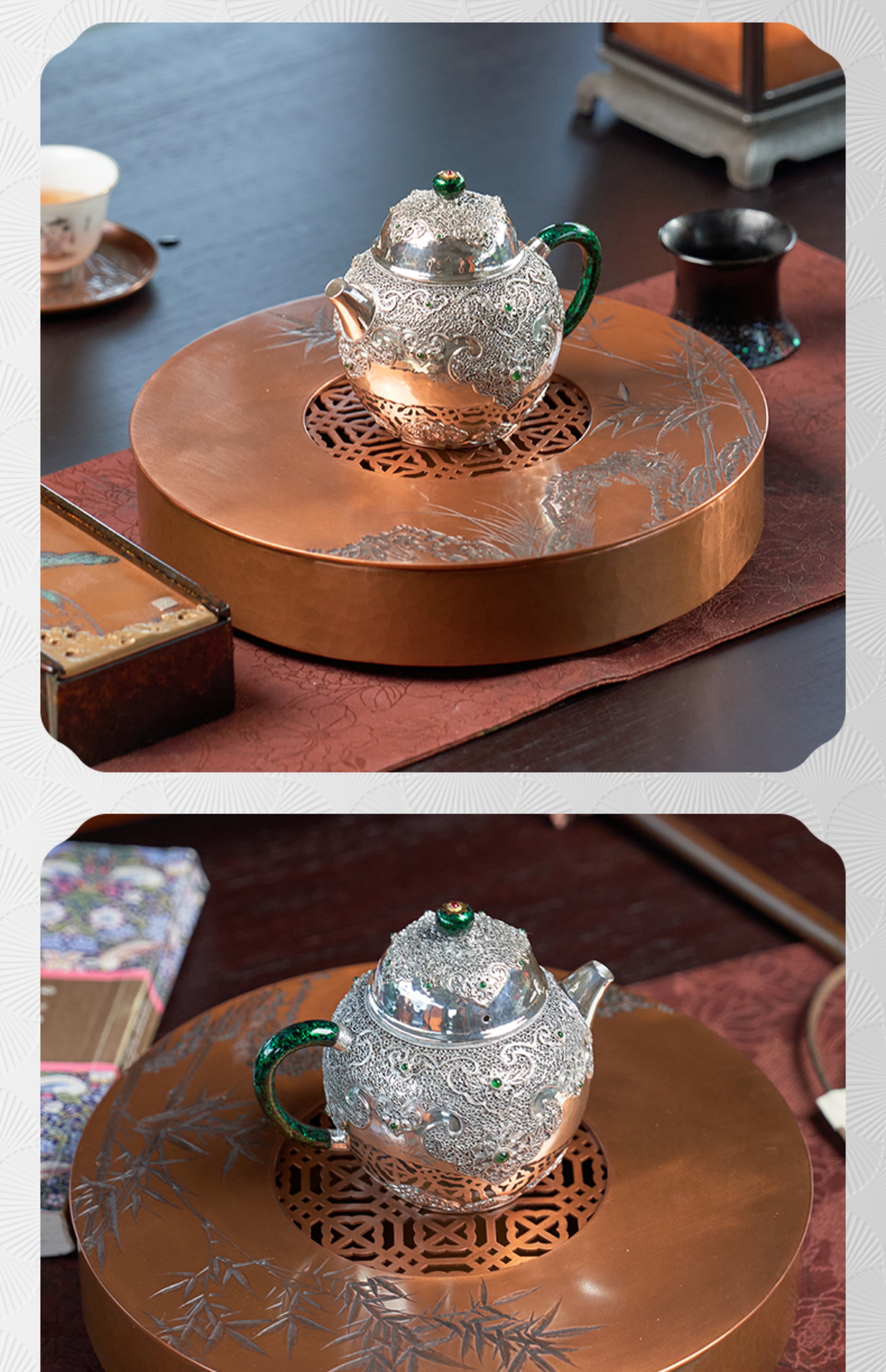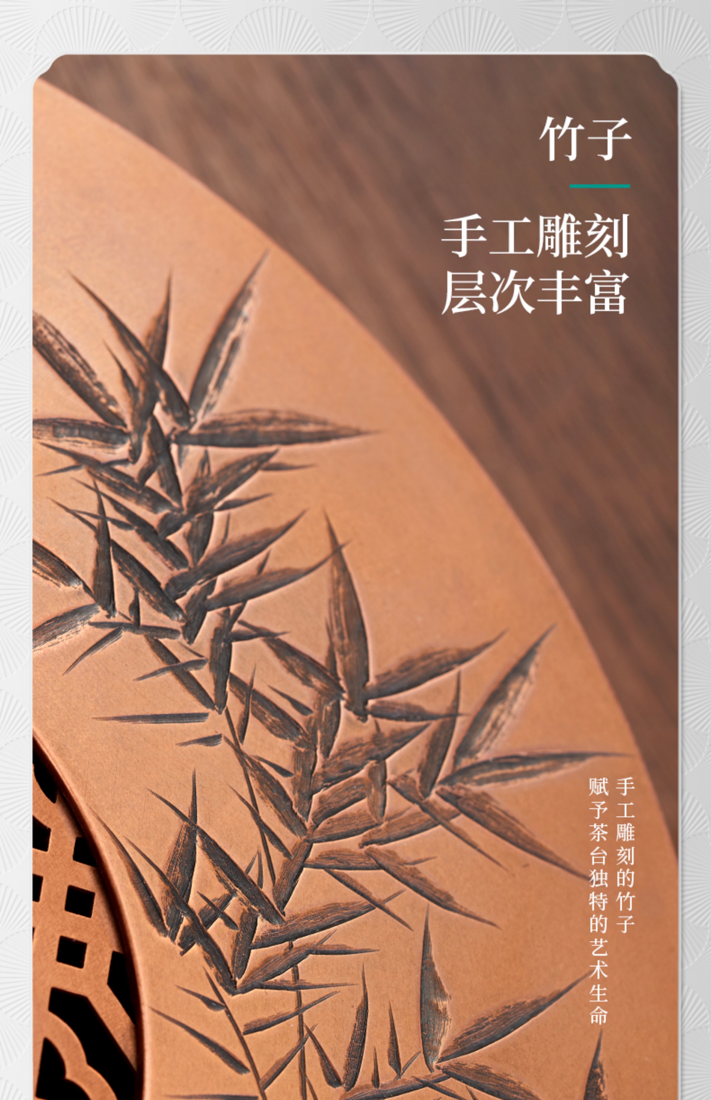 【样品特惠7折,仅1件,无货退款】臻宝堂茶台圆形铜干泡台纯手工錾刻青竹小号茶盘储水养壶茶具配件青竹茶台
