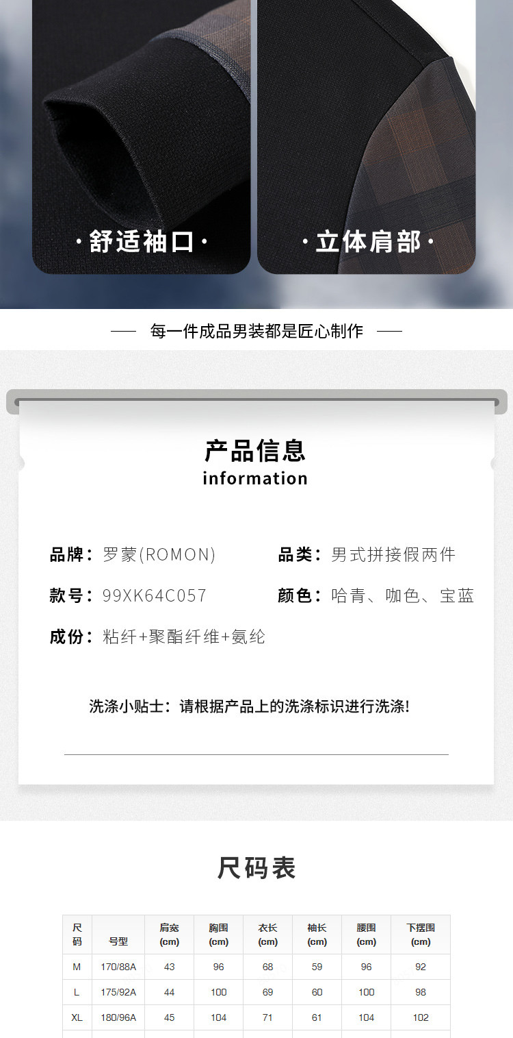 袖领面层:聚酯纤维96.6% 氨纶3.4%