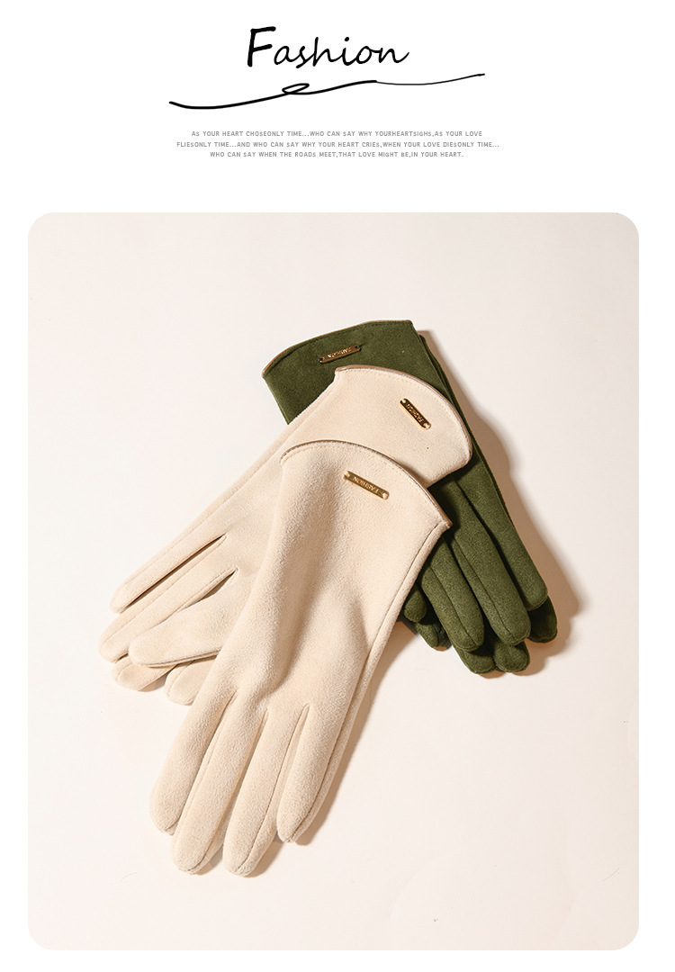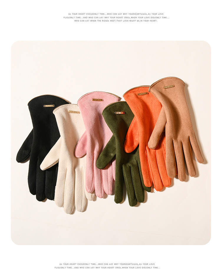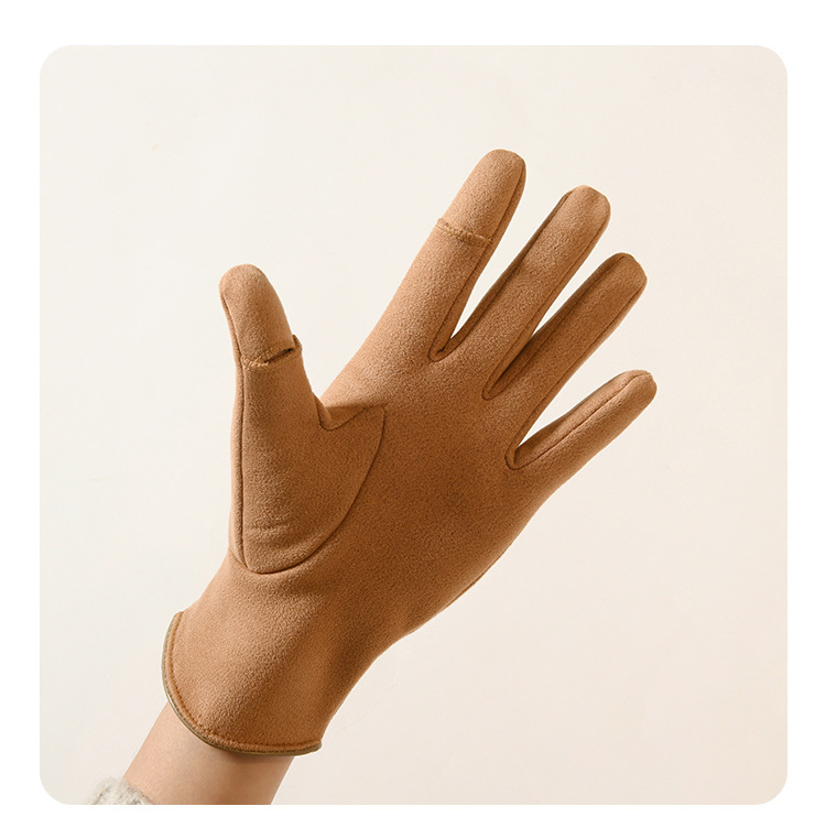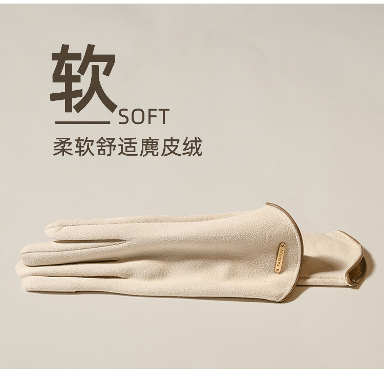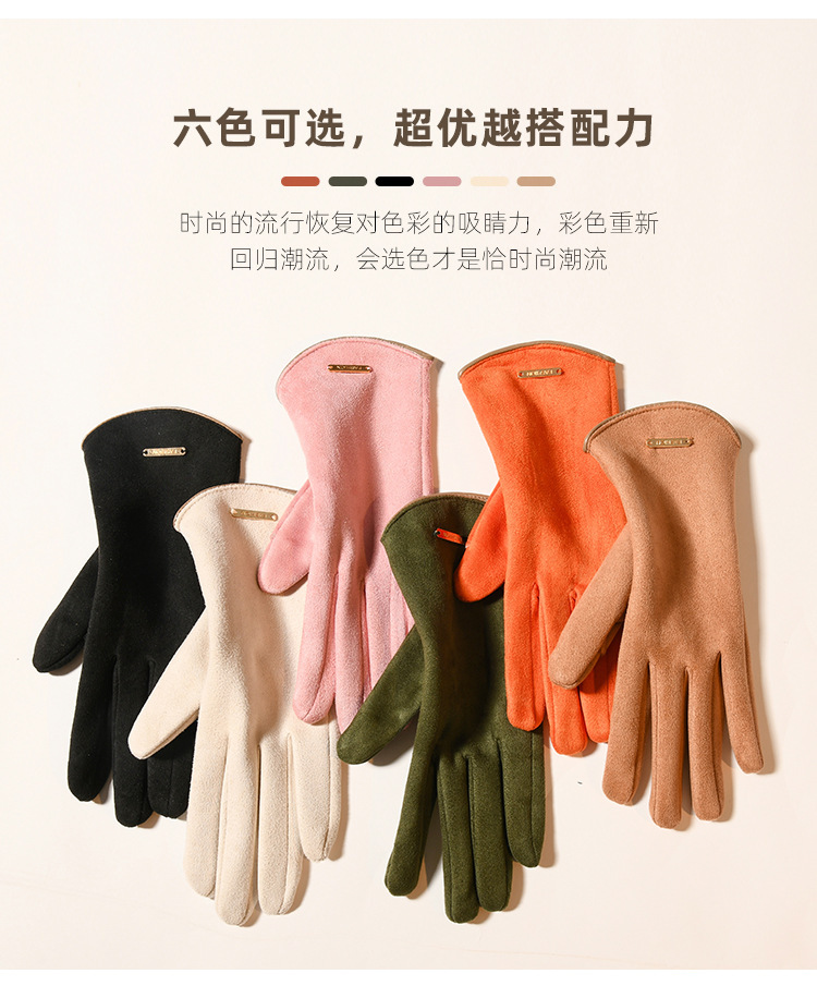 日系保暖手套冬季女加绒加厚骑行开车触屏麂皮绒保暖防寒手套冬天新款新品