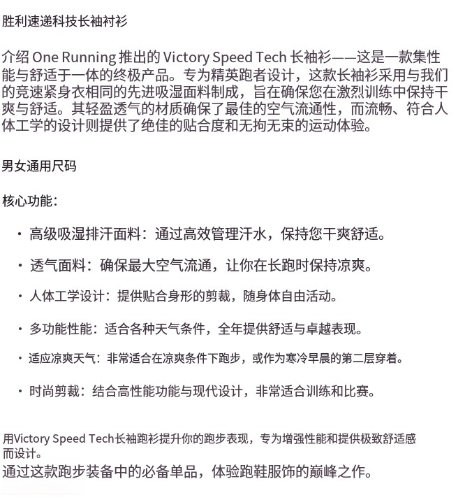 One Running Victory Speed Tech Long Sleeve Shirt White "B" 中性款运动长袖