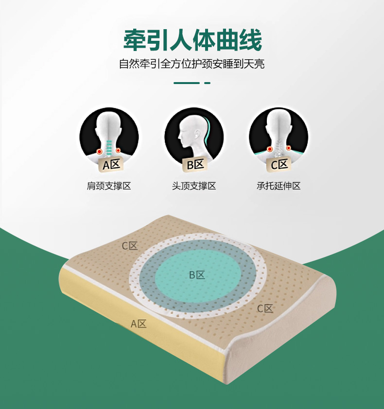 【自营】 富安娜 臻逸泰国进口呵护乳胶枕 枕头