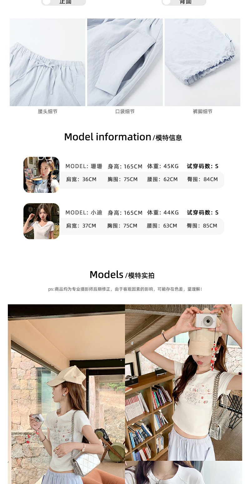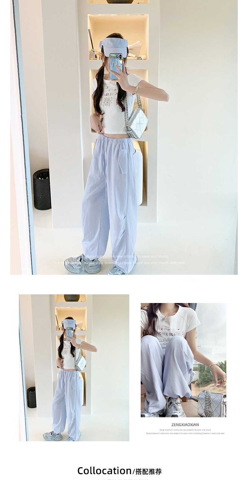 <曾小咸推荐>蓝色宽松脚口抽绳工装裤休闲裤