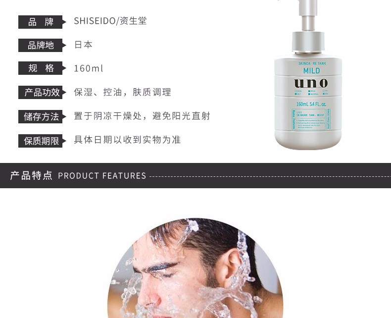 UNO是资生堂护肤产品中专门为男性而设的一套系列产品。其洁面膏蕴涵天然植物精华和玉洁去油脂成分,深层洁肤、并有效去除老化角质。