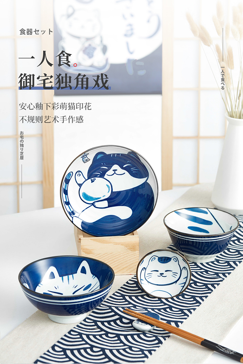 御宅独角兽餐具组 蓝色猫咪一人食餐具