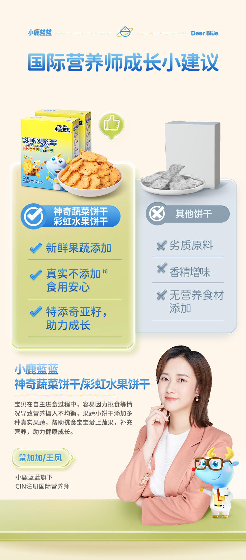 - 小鹿蓝蓝始终致力于为主人提供更优质、高性价比的产品、服务和体验,共同打造婴童零食生态圈,提升母婴行业的国货自信,守护和陪伴新一代儿童健康、快乐地成长。