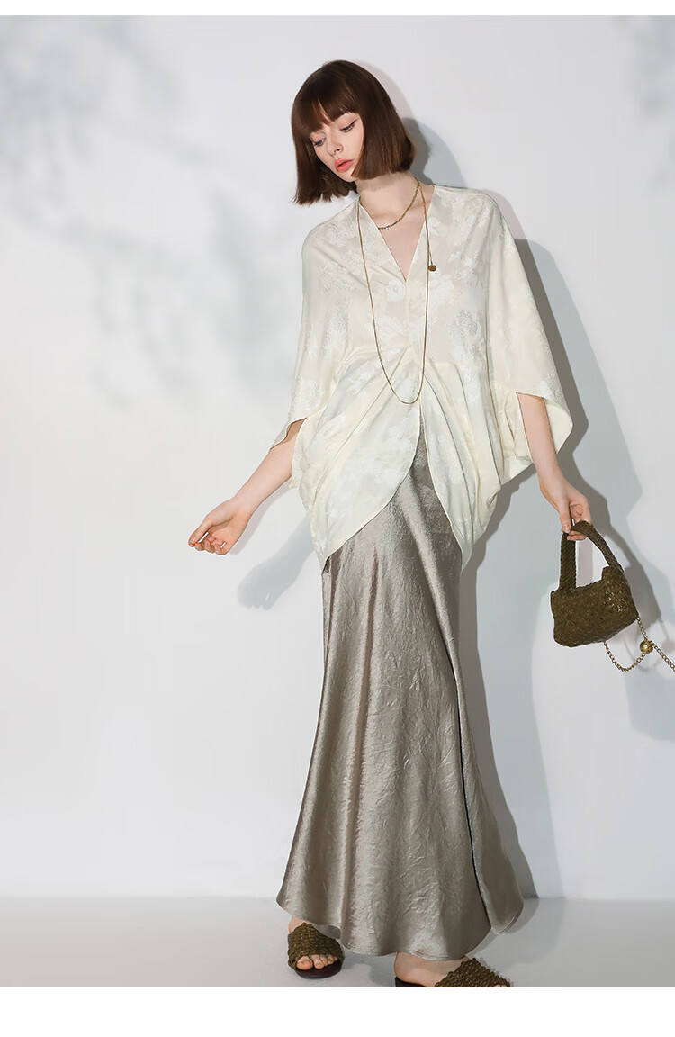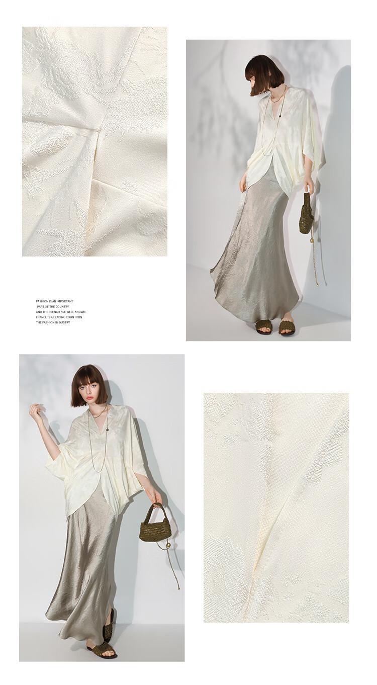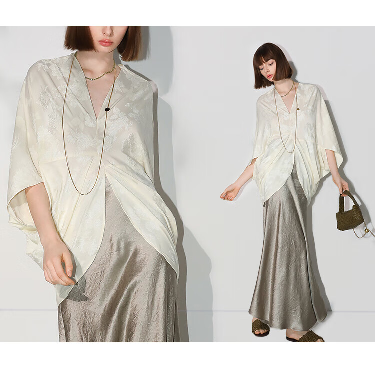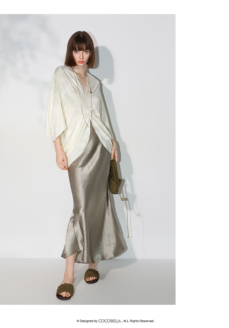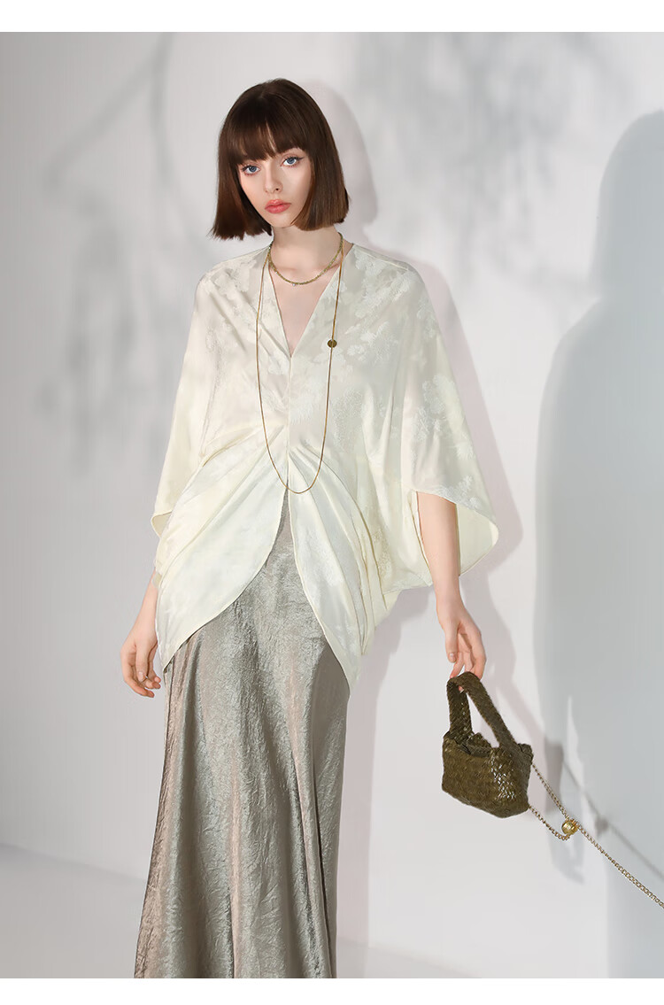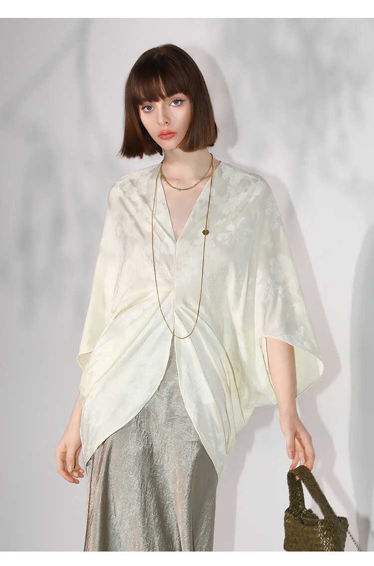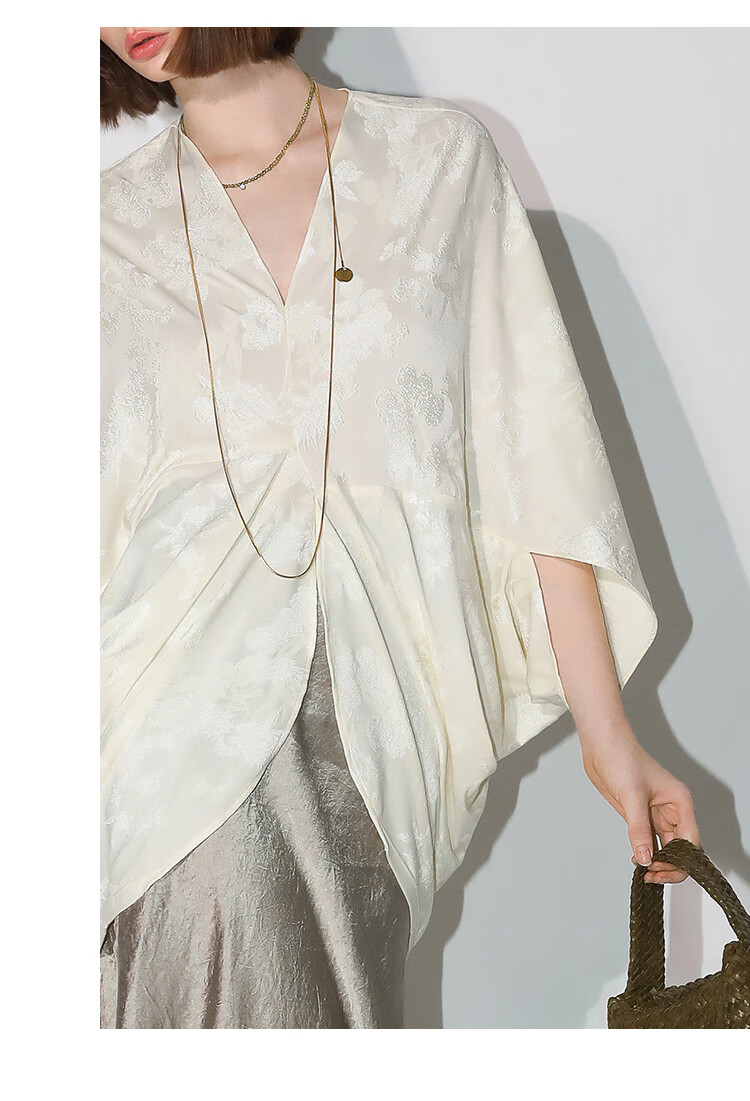 COCOBELLA不对称解构立裁暗纹提花针织衫秋蝙蝠袖罩衫SR7043