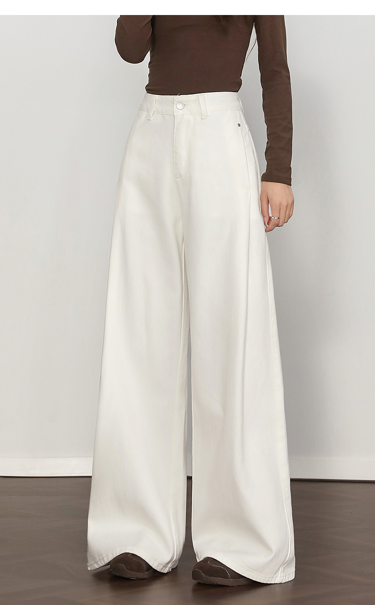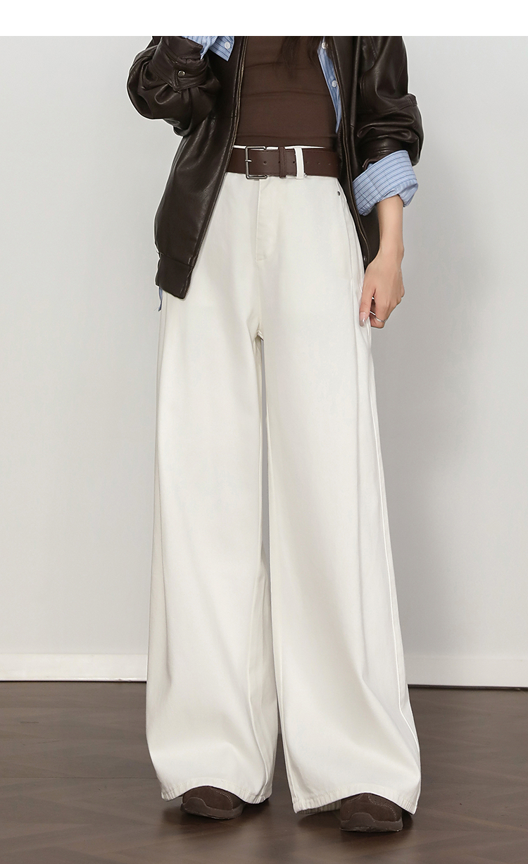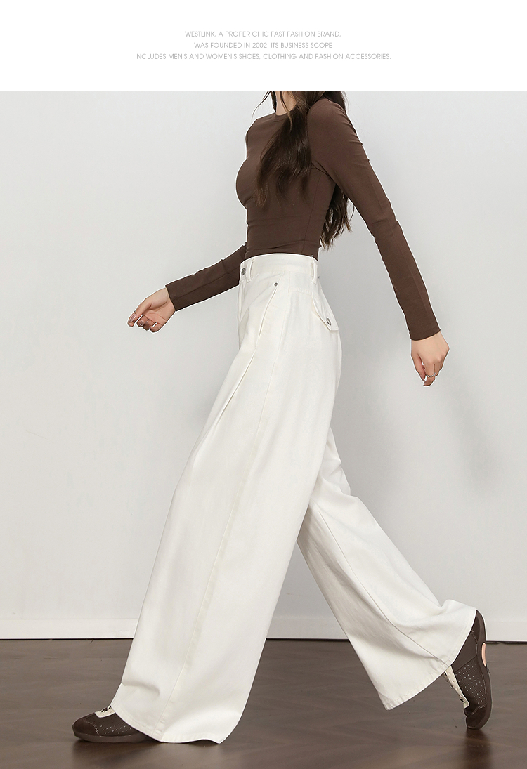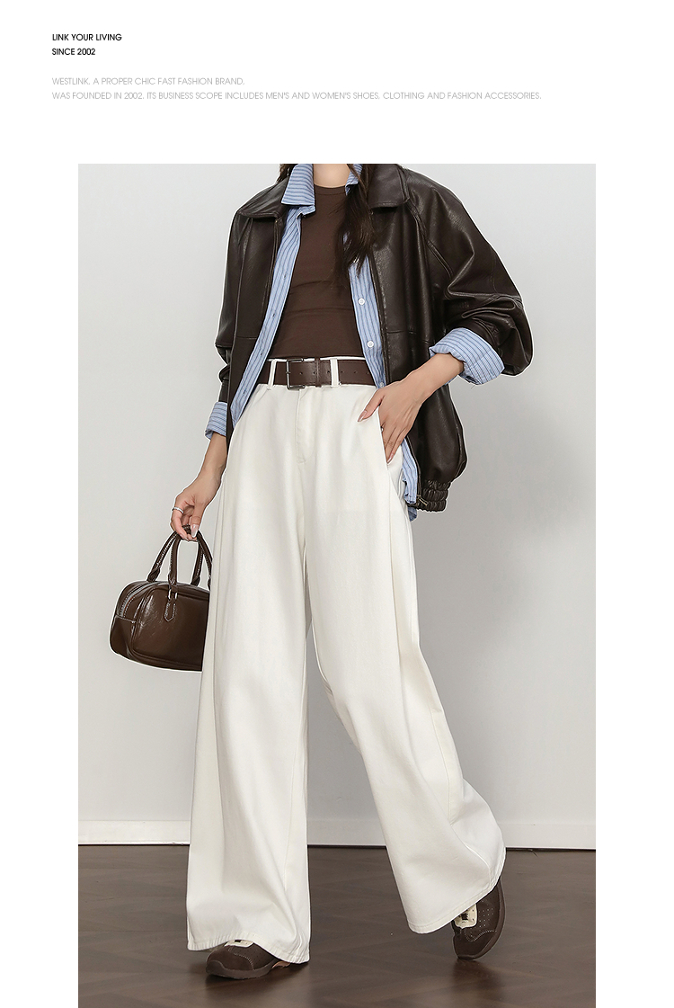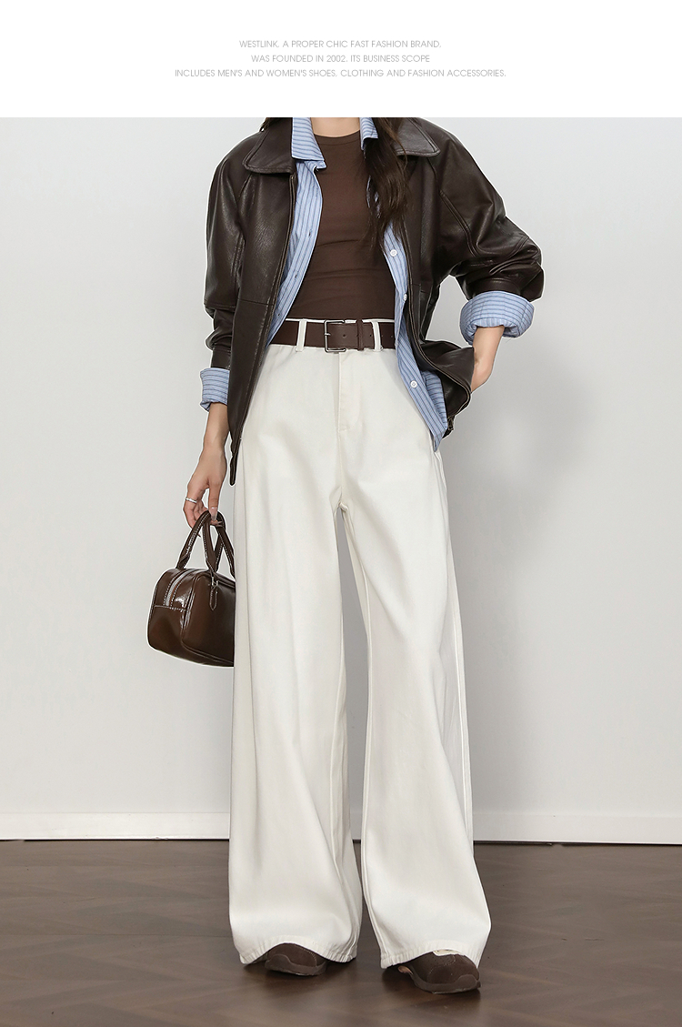 西遇复古百搭白色牛仔裤女秋季新款高腰显瘦休闲直筒阔腿裤H0055227