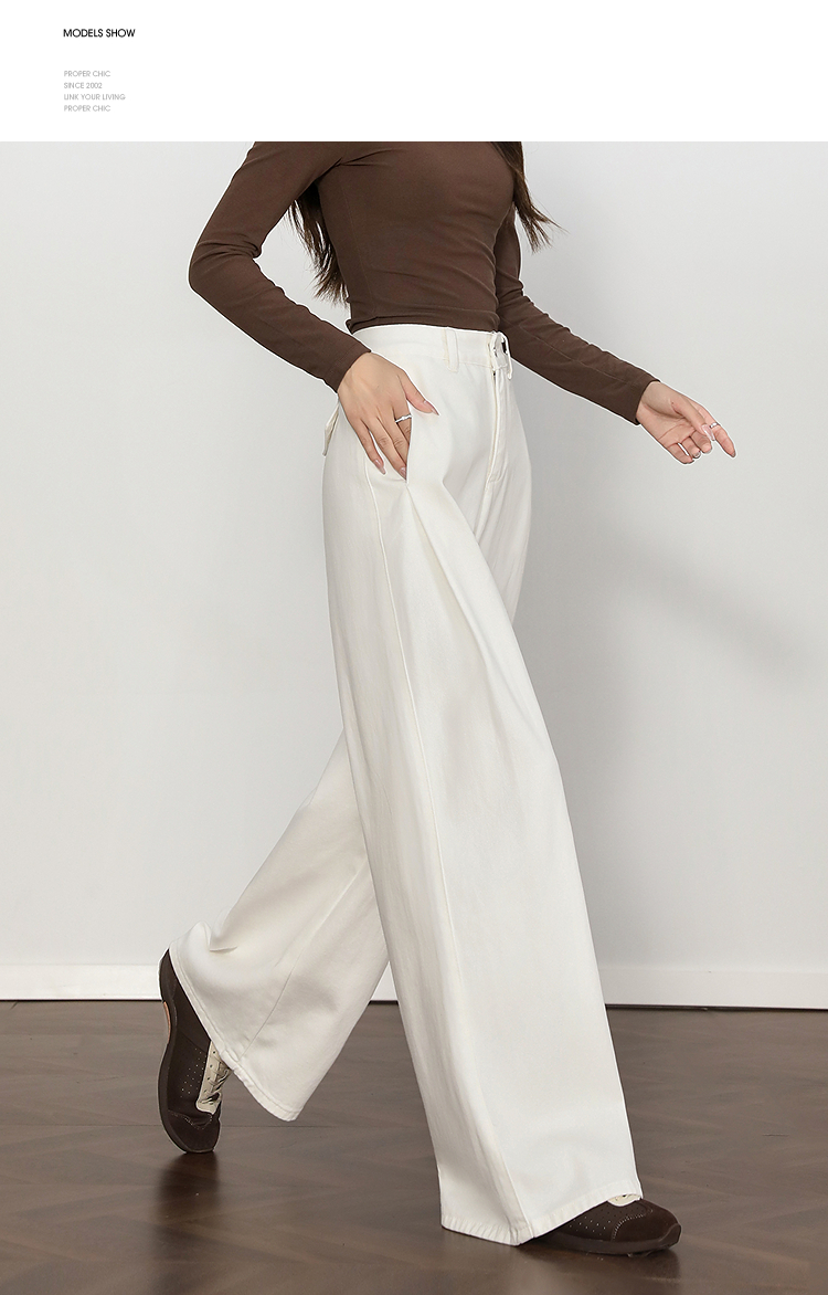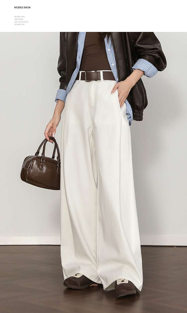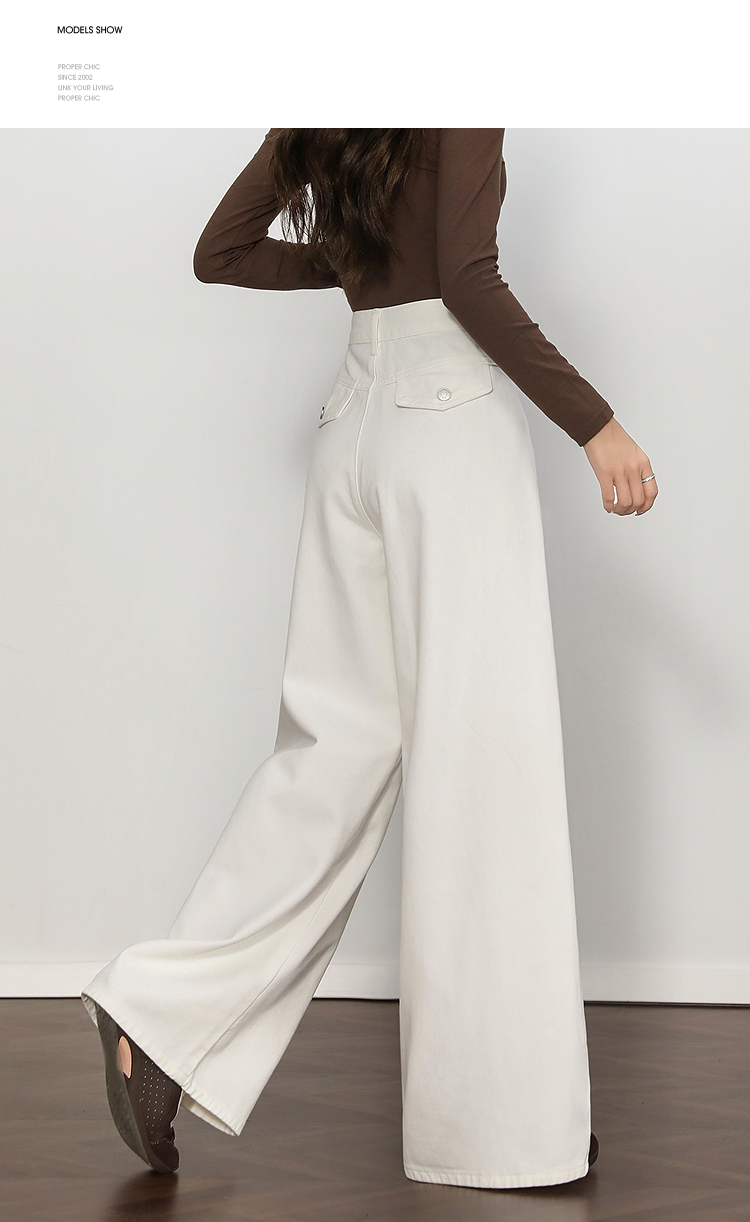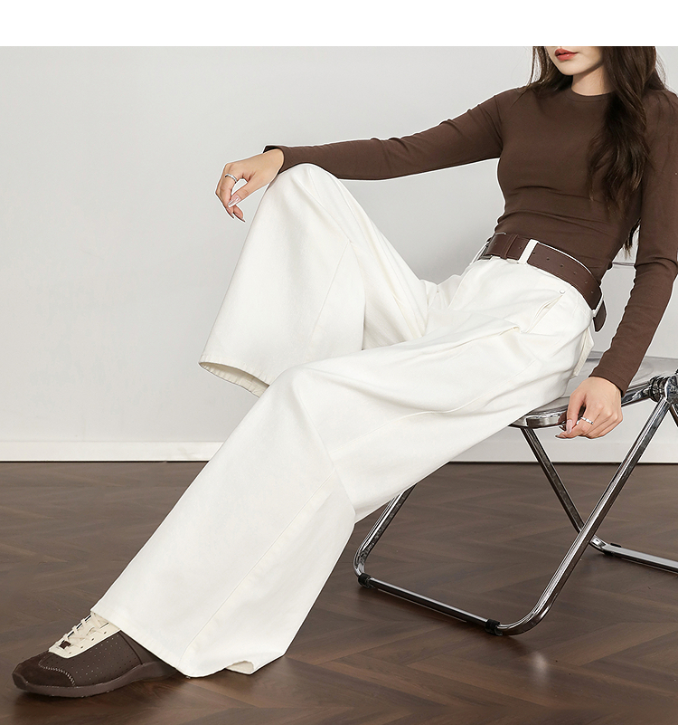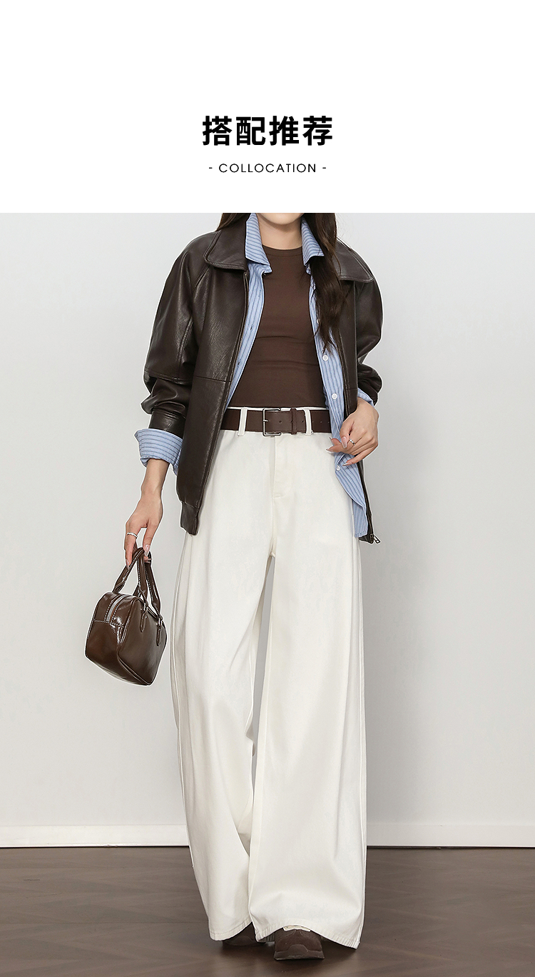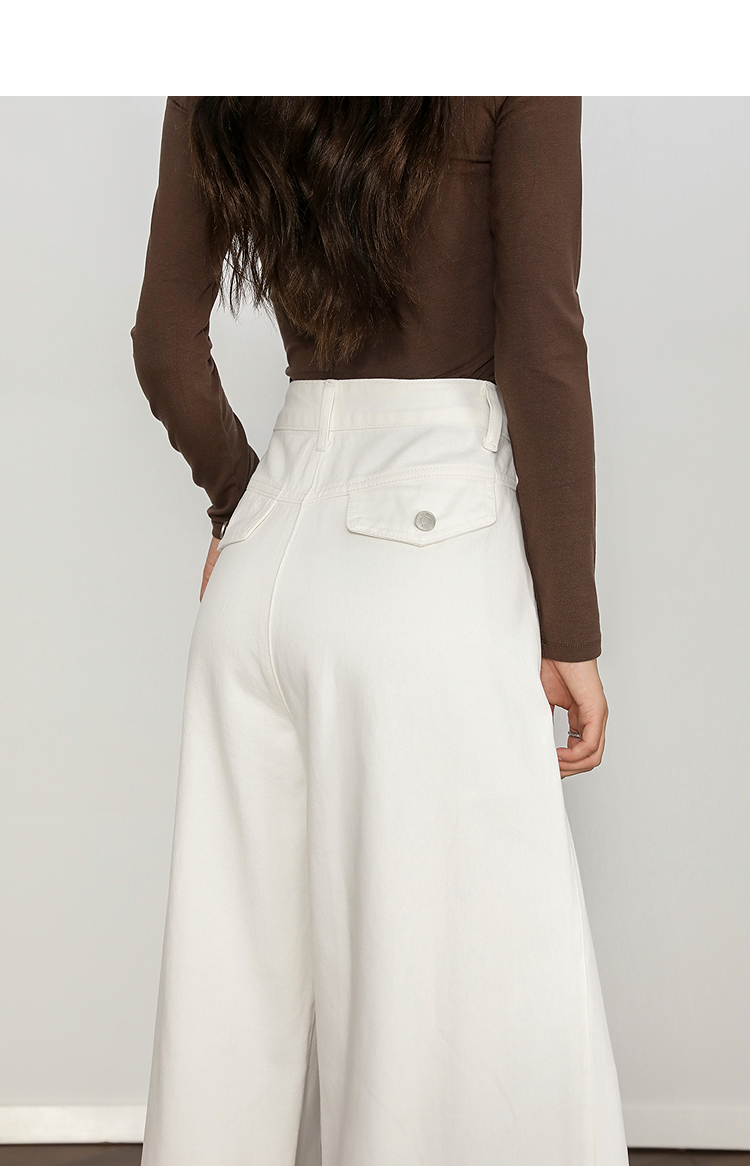 西遇复古百搭白色牛仔裤女秋季新款高腰显瘦休闲直筒阔腿裤H0055227
