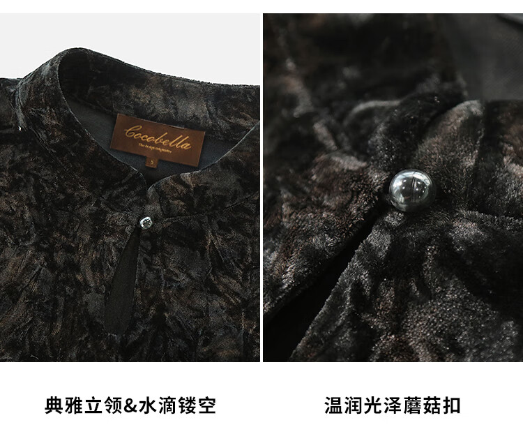 【秒杀】COCOBELLA新中式扎染丝绒衬衫女国风气质立领长袖上衣TS7069