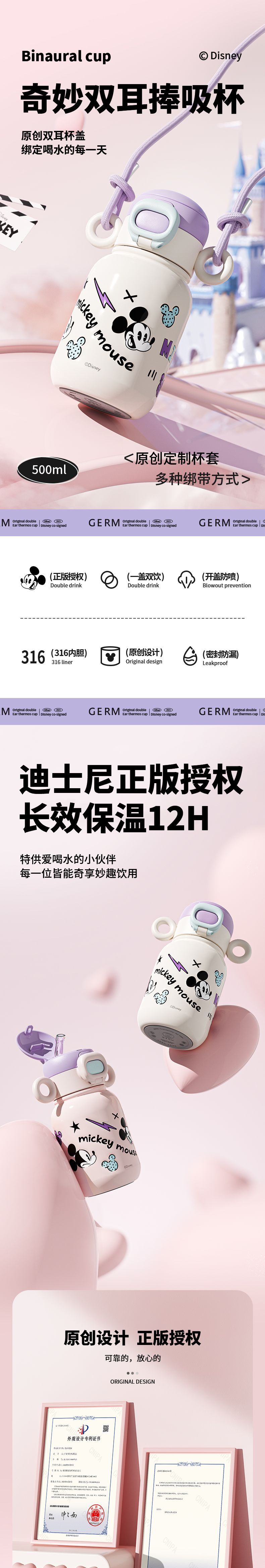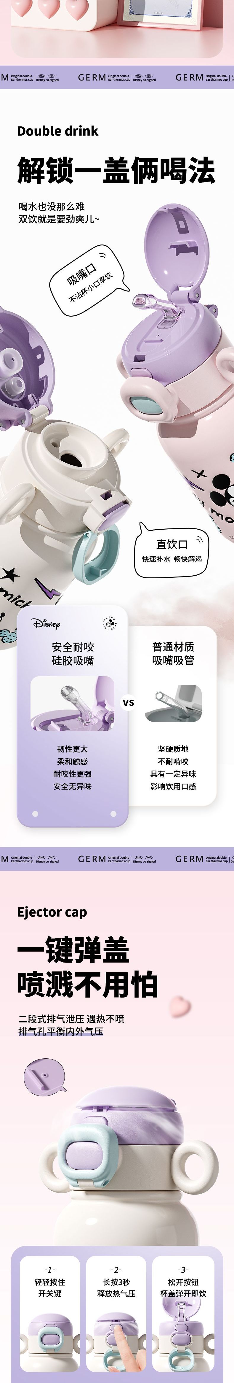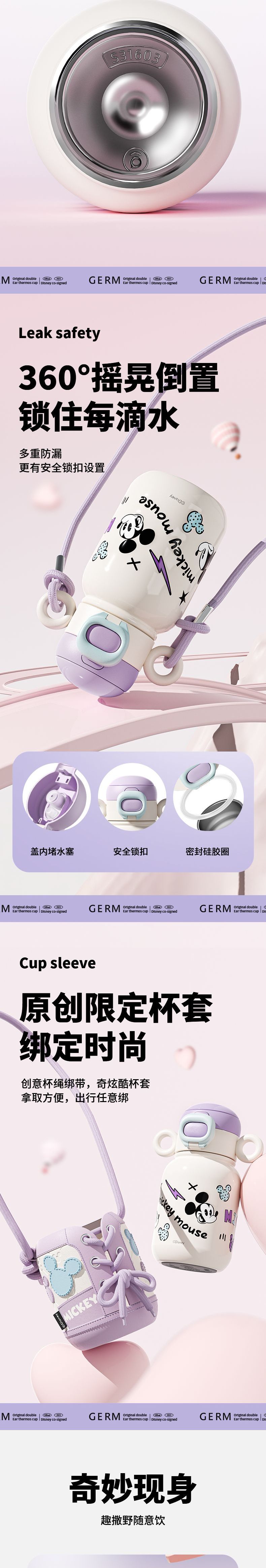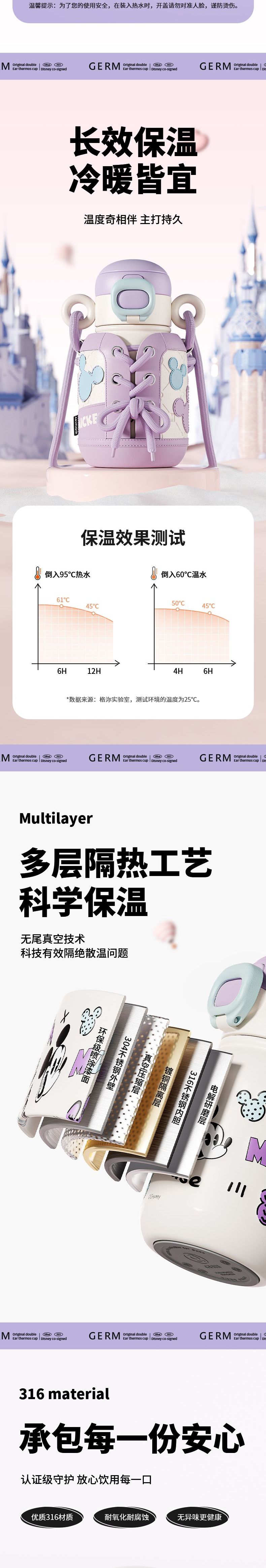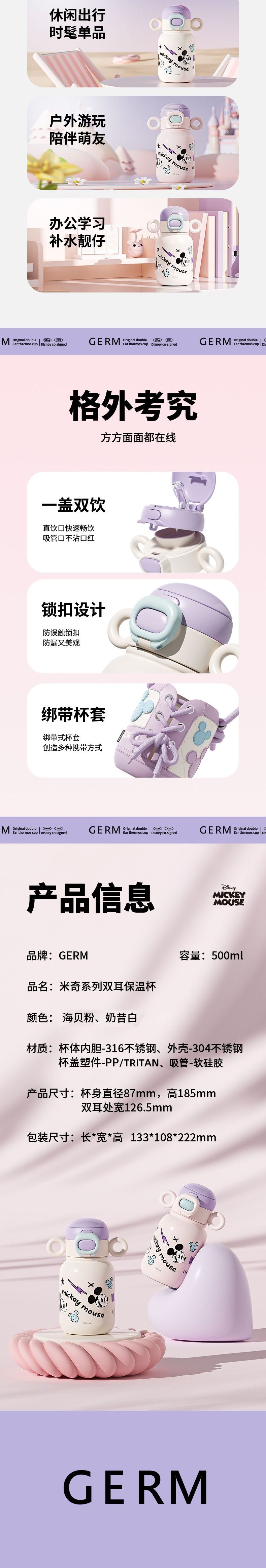 GERM格米 米奇系列萌耳保温杯 GE-DS23AW-B59 迪士尼吸管杯女生可爱