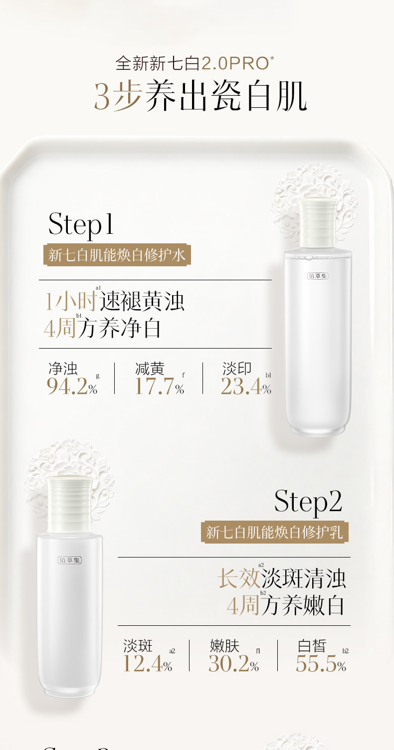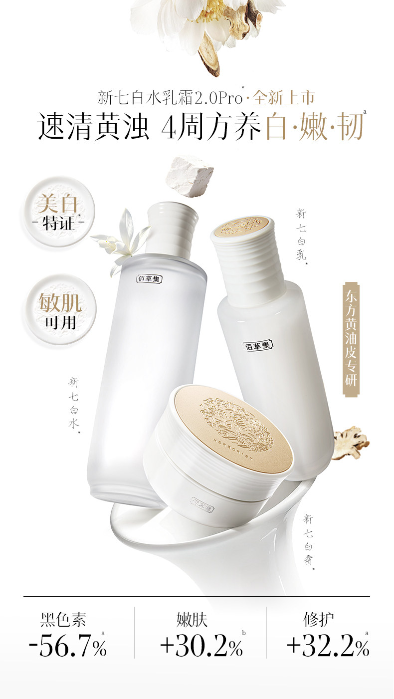 【新升级2.0Pro美白护肤套组】佰草集新七白美白祛斑护肤套组(水乳/水乳霜/水乳面膜)持证上岗美白产品